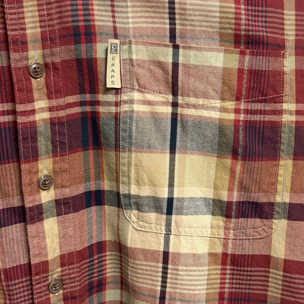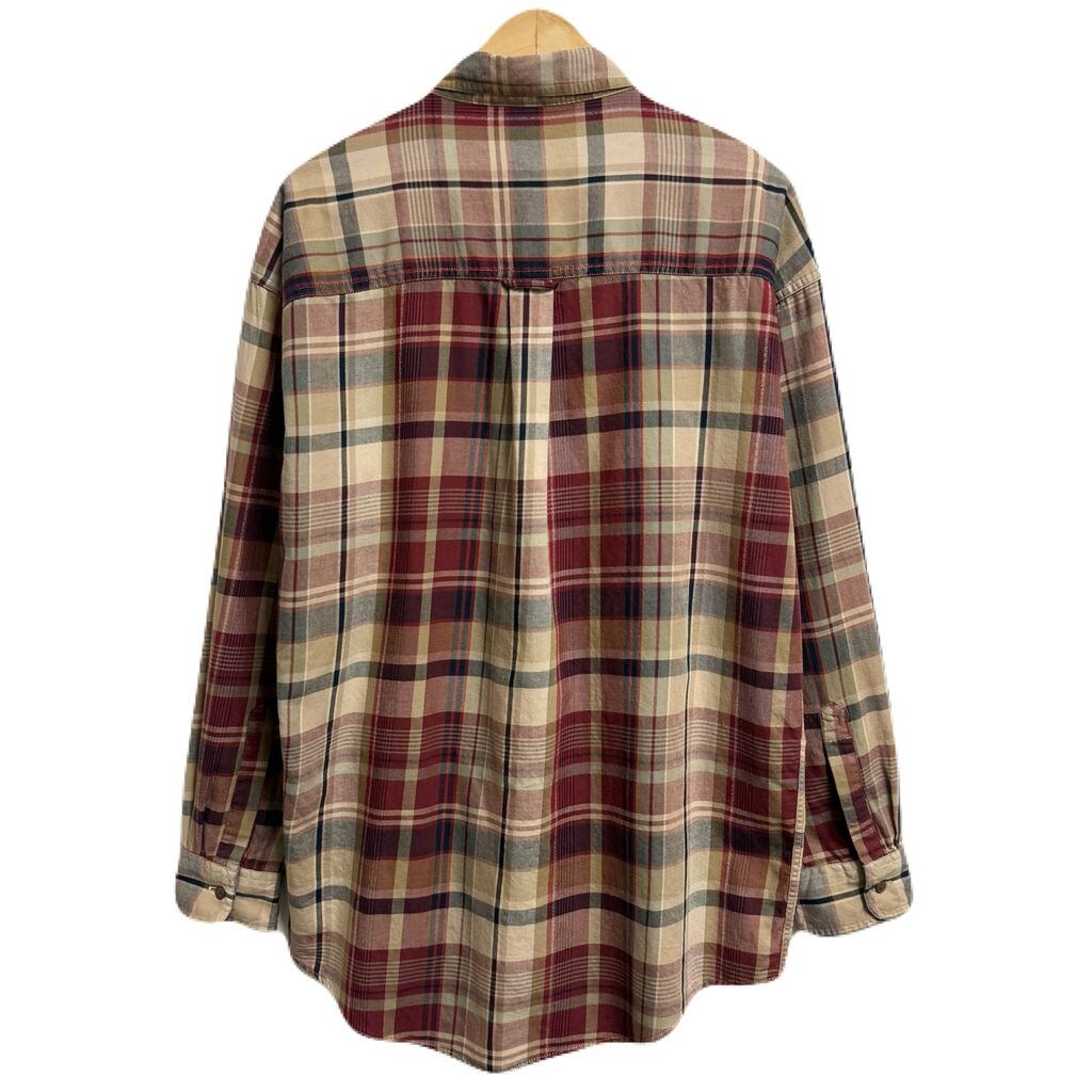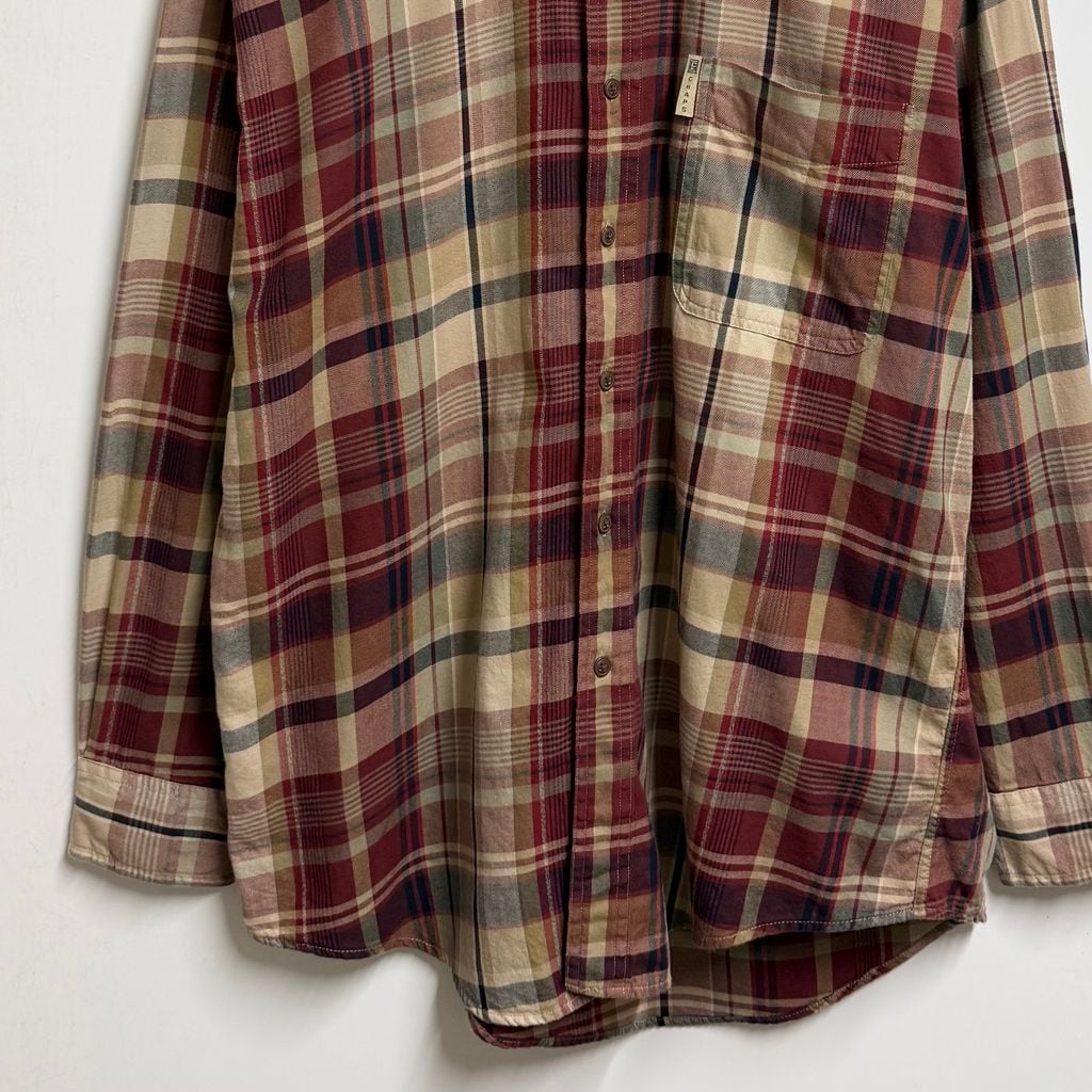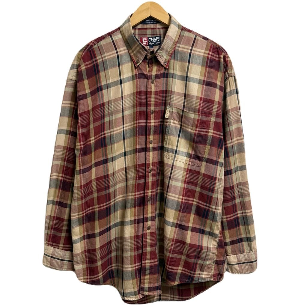 CHAPS チャップス RALPH LAUREN ラルフローレン ボタンダウンシャツ コットンシャツ チェック柄 ポケット付き 長袖シャツ ベージュ×ワインレッド×多色 Lサイズ No.L961