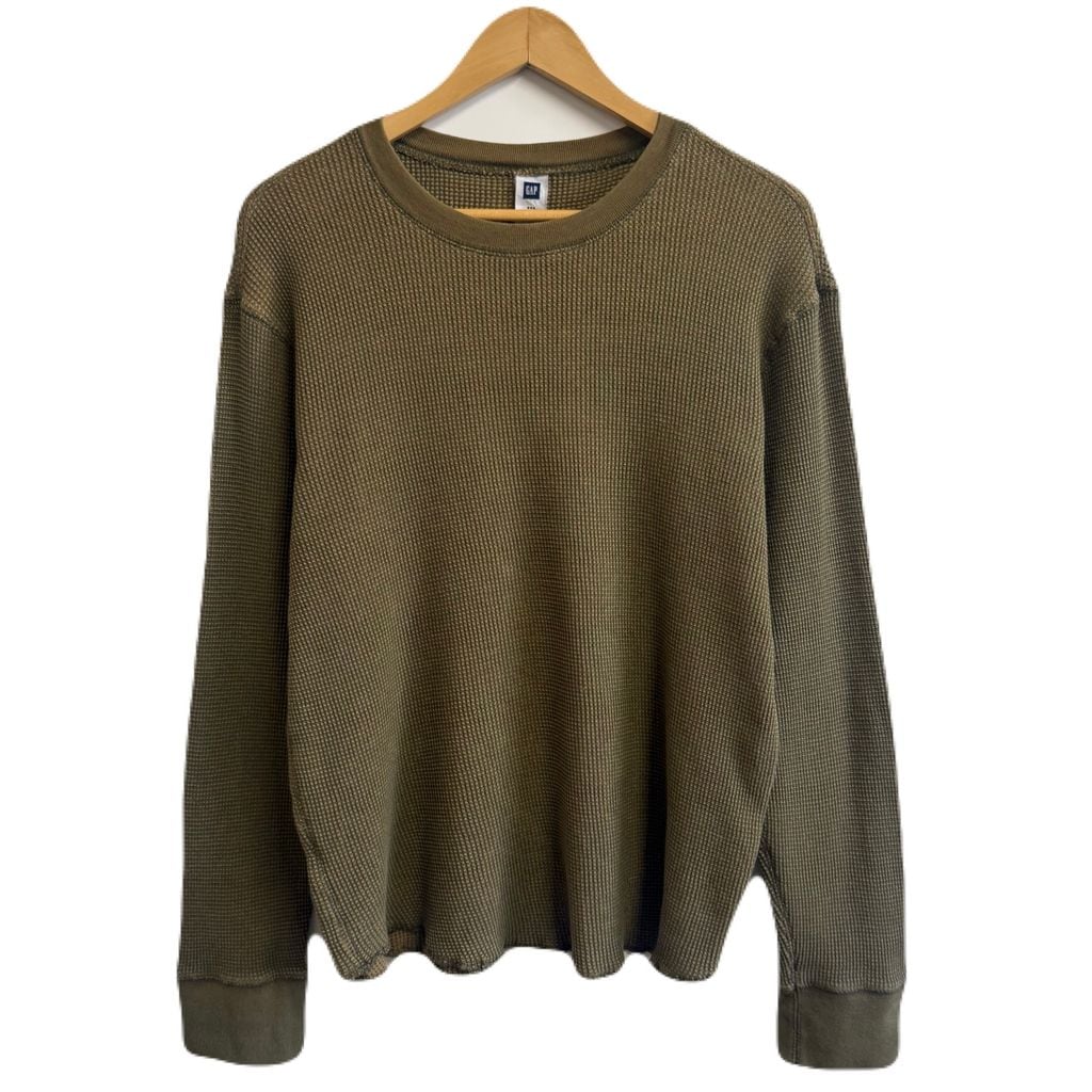 GAP ギャップ サーマルロンT ワッフル地 無地 カーキ×ブラウン Lサイズ No.L976
