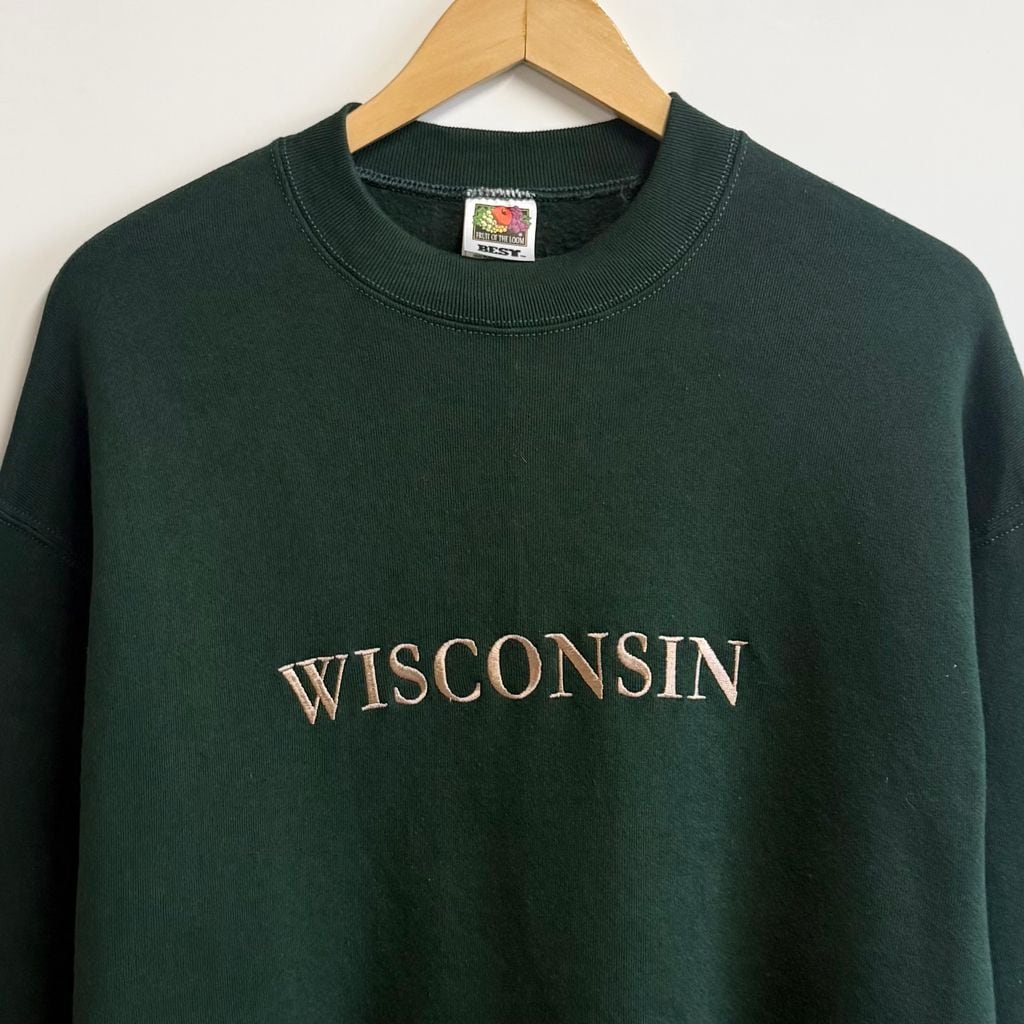 FRUIT OF THE LOOM フルーツオブザルーム WISCONSIN ウィスコンシン 刺繍 トレーナー スウェット 裏起毛 緑 グリーン Lサイズ No.L982