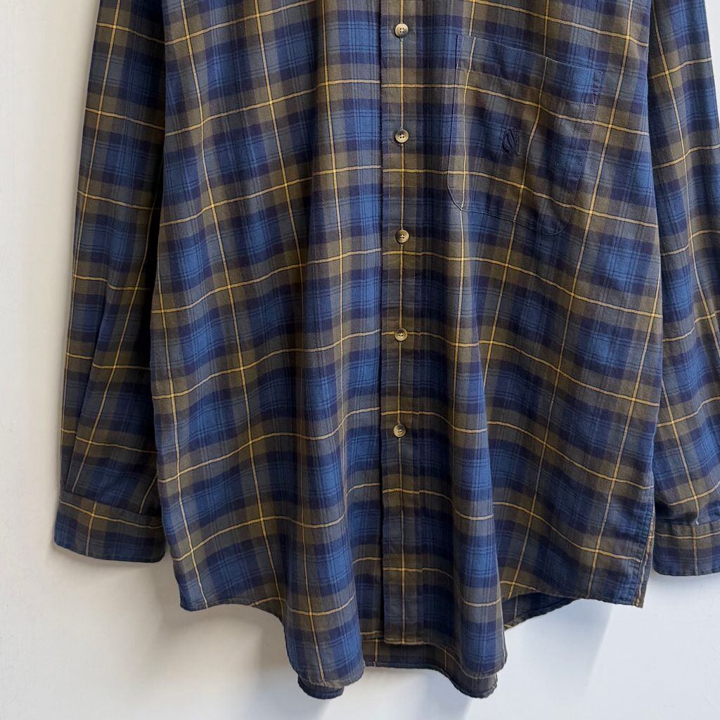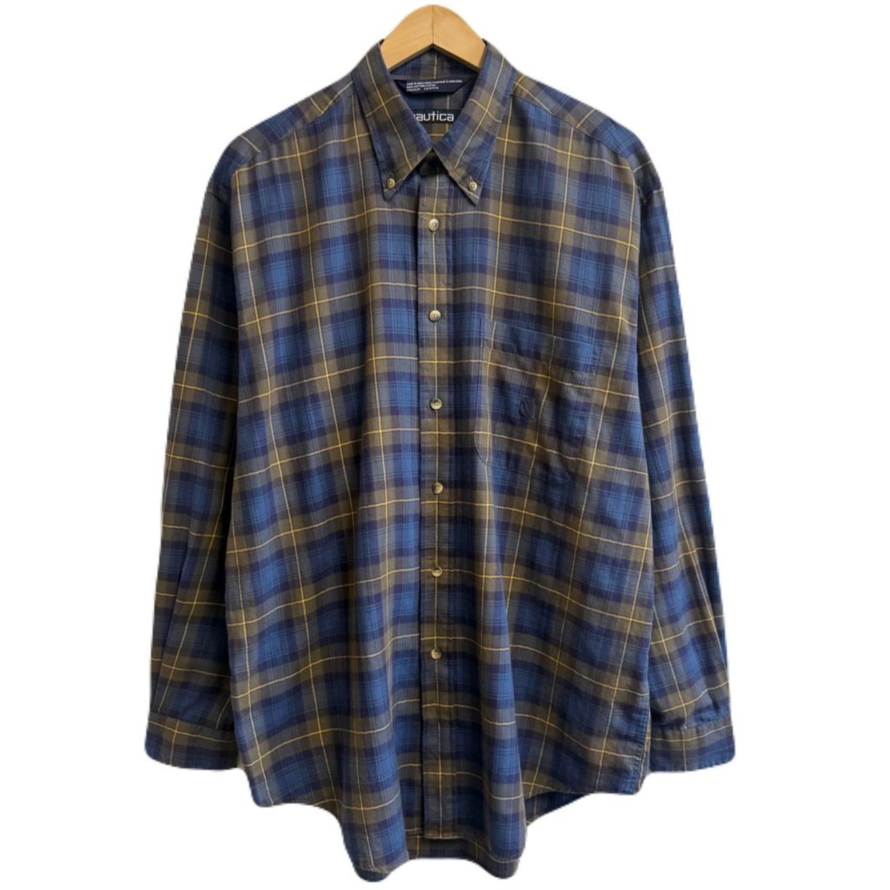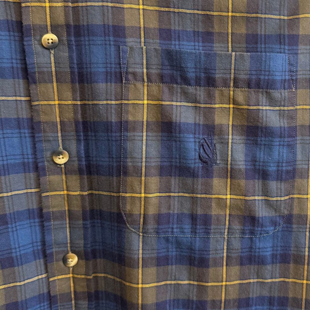 nautica ノーティカ ボタンダウンシャツ コットンシャツ チェック柄 ポケット付き 長袖シャツ ワンポイントロゴ 刺繍 青×紺×黄色 L/Gサイズ No.L983