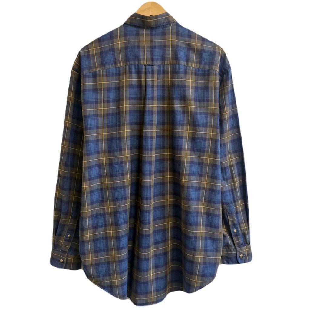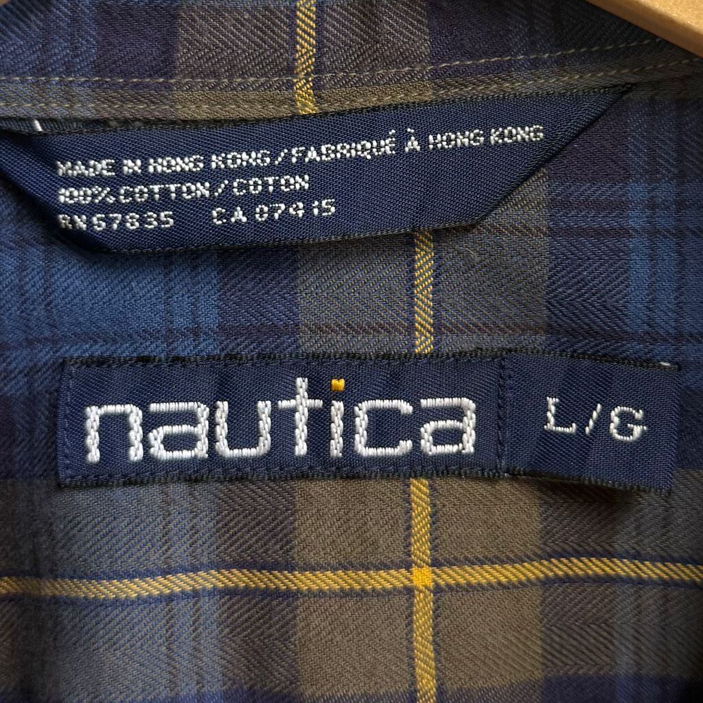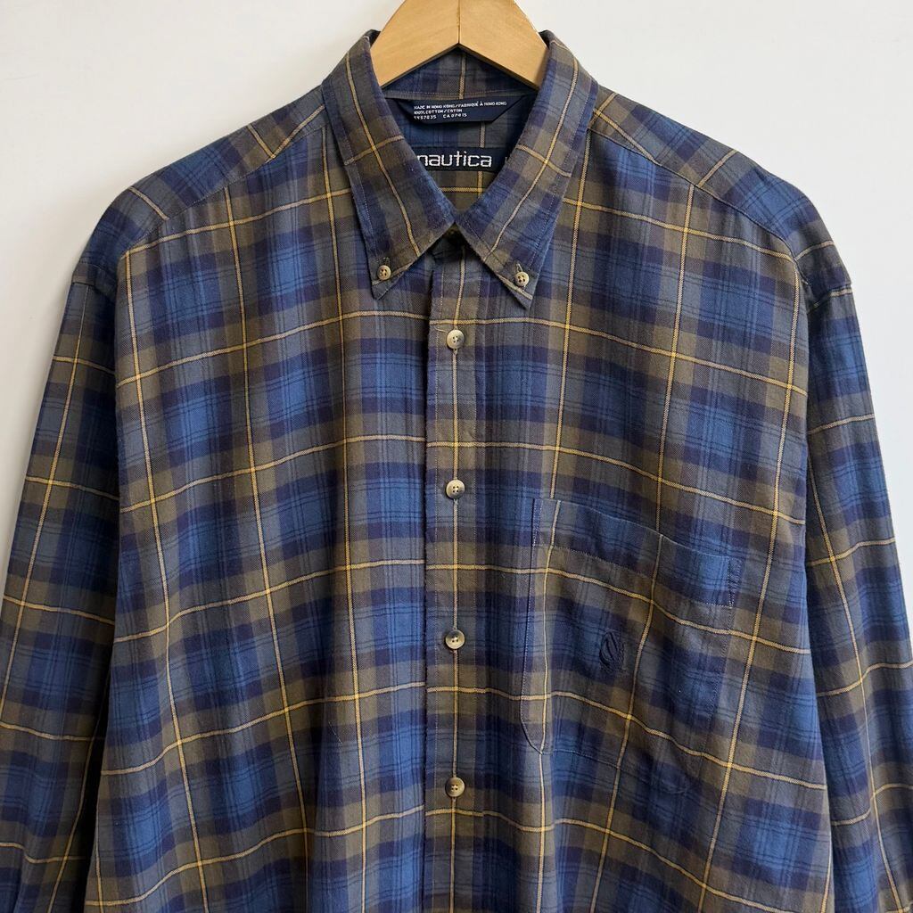 nautica ノーティカ ボタンダウンシャツ コットンシャツ チェック柄 ポケット付き 長袖シャツ ワンポイントロゴ 刺繍 青×紺×黄色 L/Gサイズ No.L983