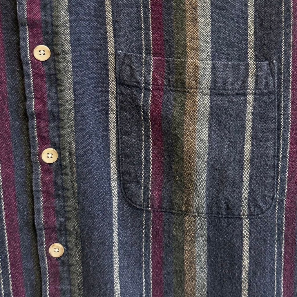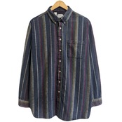 PURITAN ボタンダウンシャツ コットンシャツ ストライプ ポケット付き 厚手長袖シャツ 紺×多色 XLTサイズ No.L986