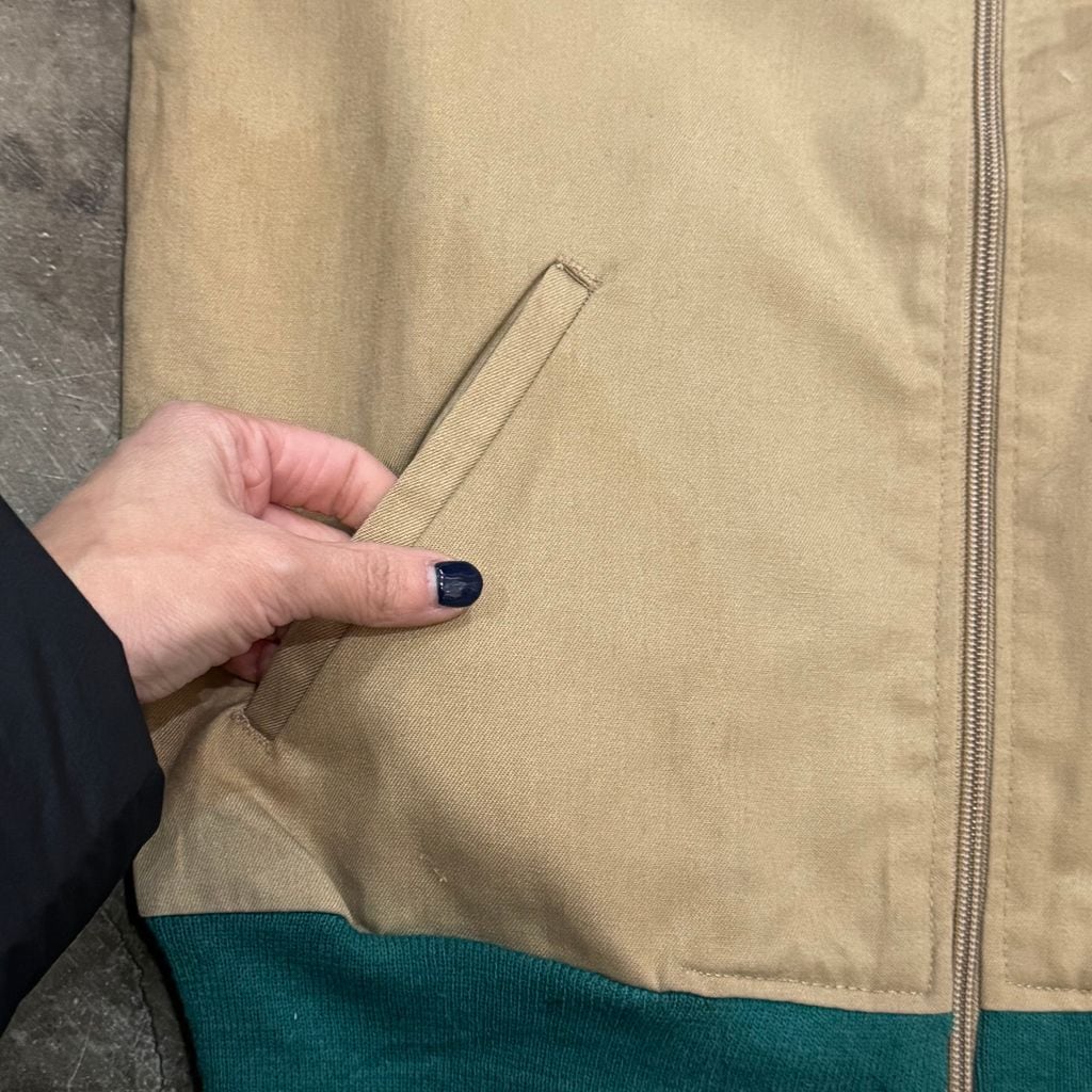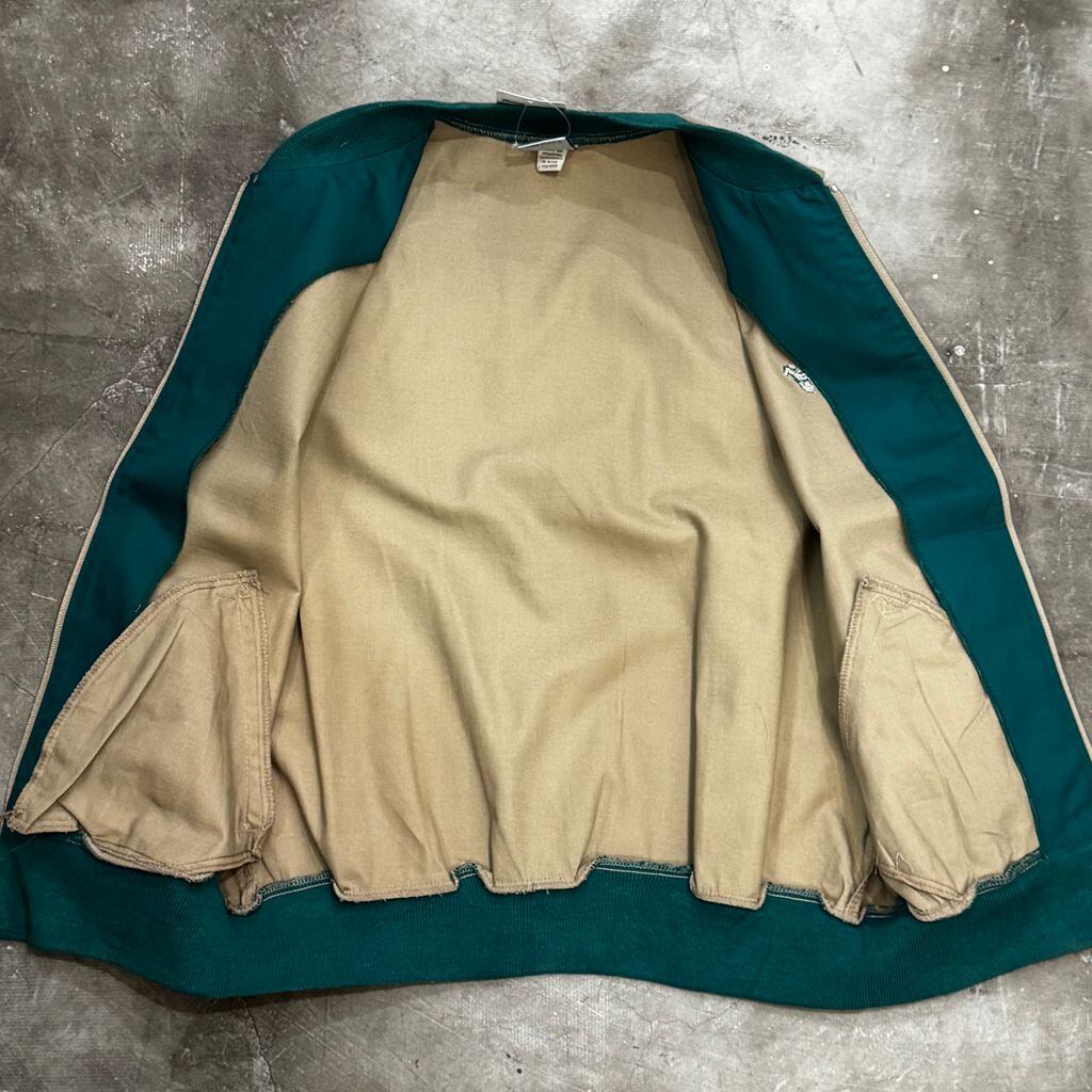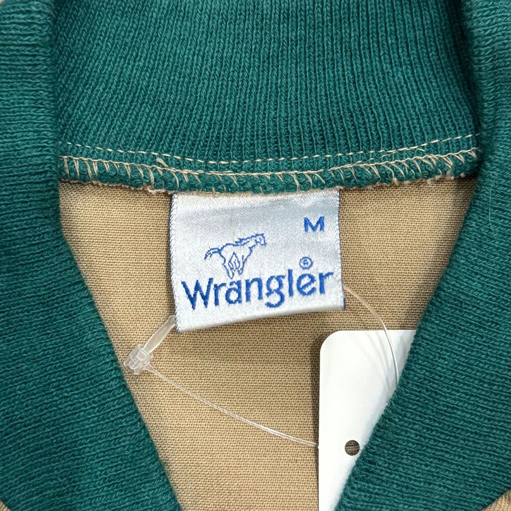 USA製 80s Wrangler ラングラー ベスト 刺繍ロゴ ポケット付き ベージュ×グリーン Mサイズ No.EA28