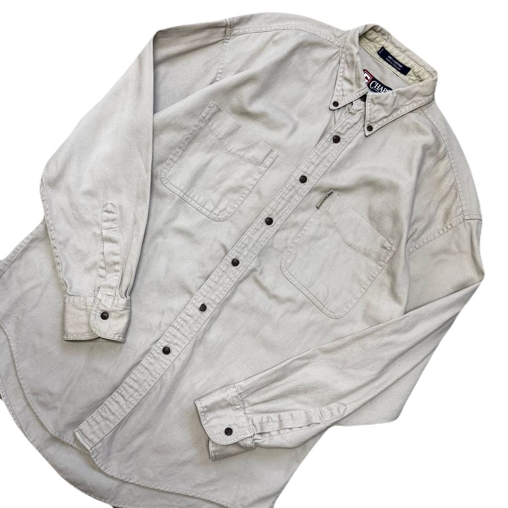 CHAPS RALPH LAUREN チャップス ラルフローレン ボタンダウン ポケット付き コットンシャツ 長袖シャツ ベージュ Mサイズ No.EA30