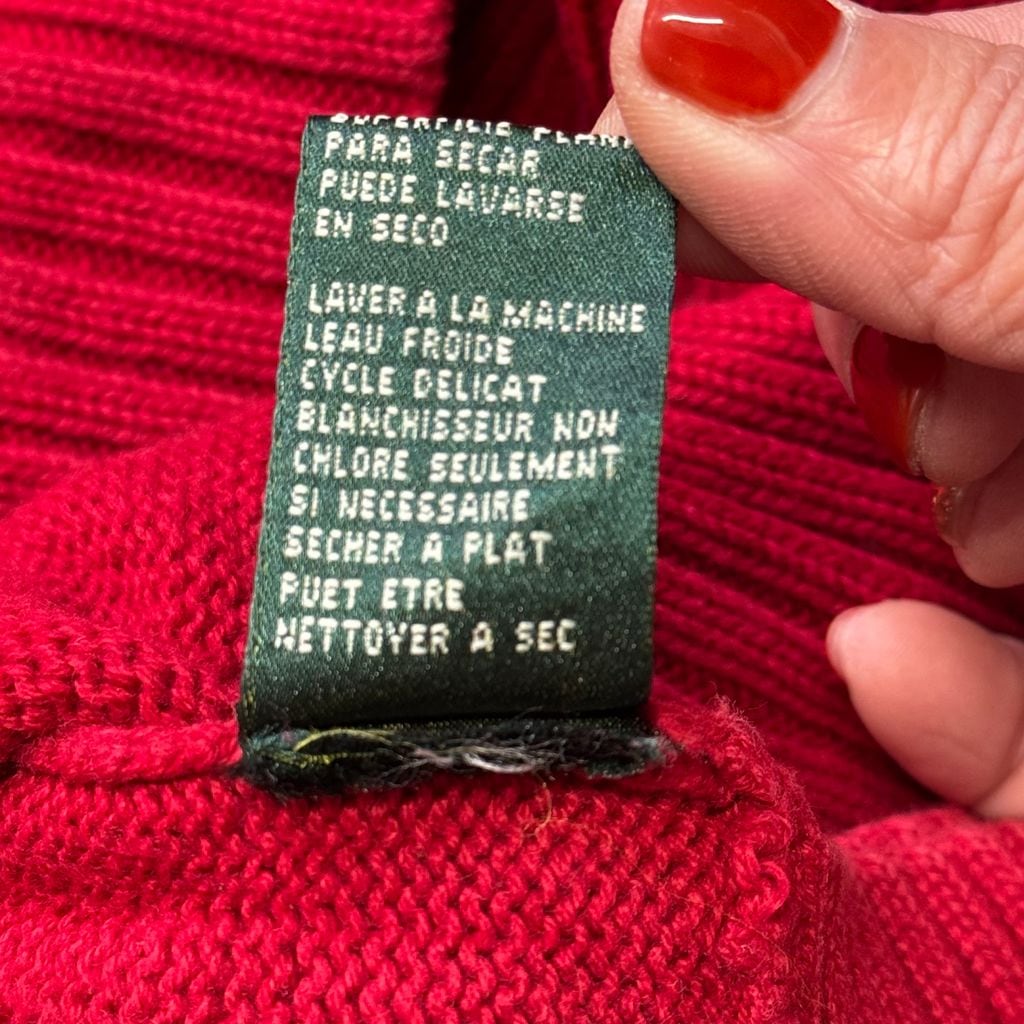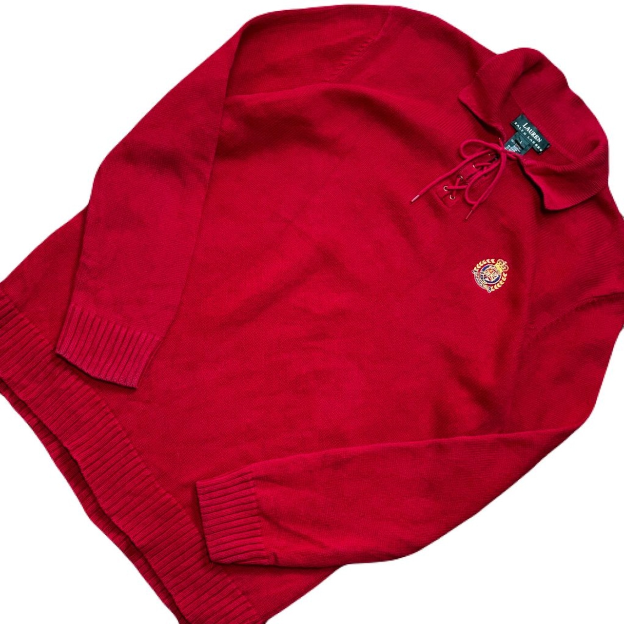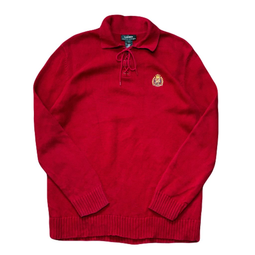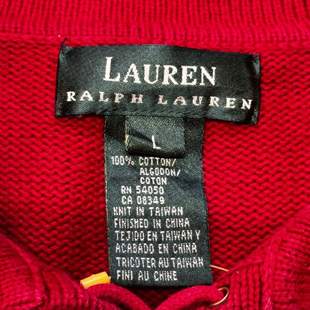 LAUREN RALPH LAUREN ローレン ラルフローレン 襟付き コットンニット 刺繍 赤 Lサイズ No.EA29