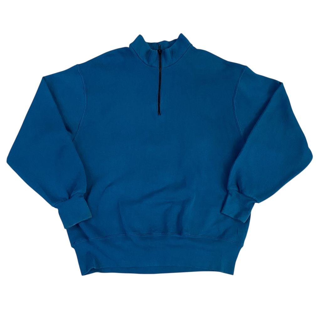 90s〜 BVD ハーフジップ スウェット 無地 青色 サイズL No.S066