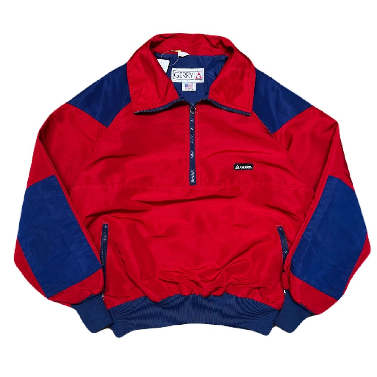 USA製 90s GERRY ジェリー ナイロンプルオーバー ハーフジップ ジャケット 赤×紺 Lサイズ No.EA53