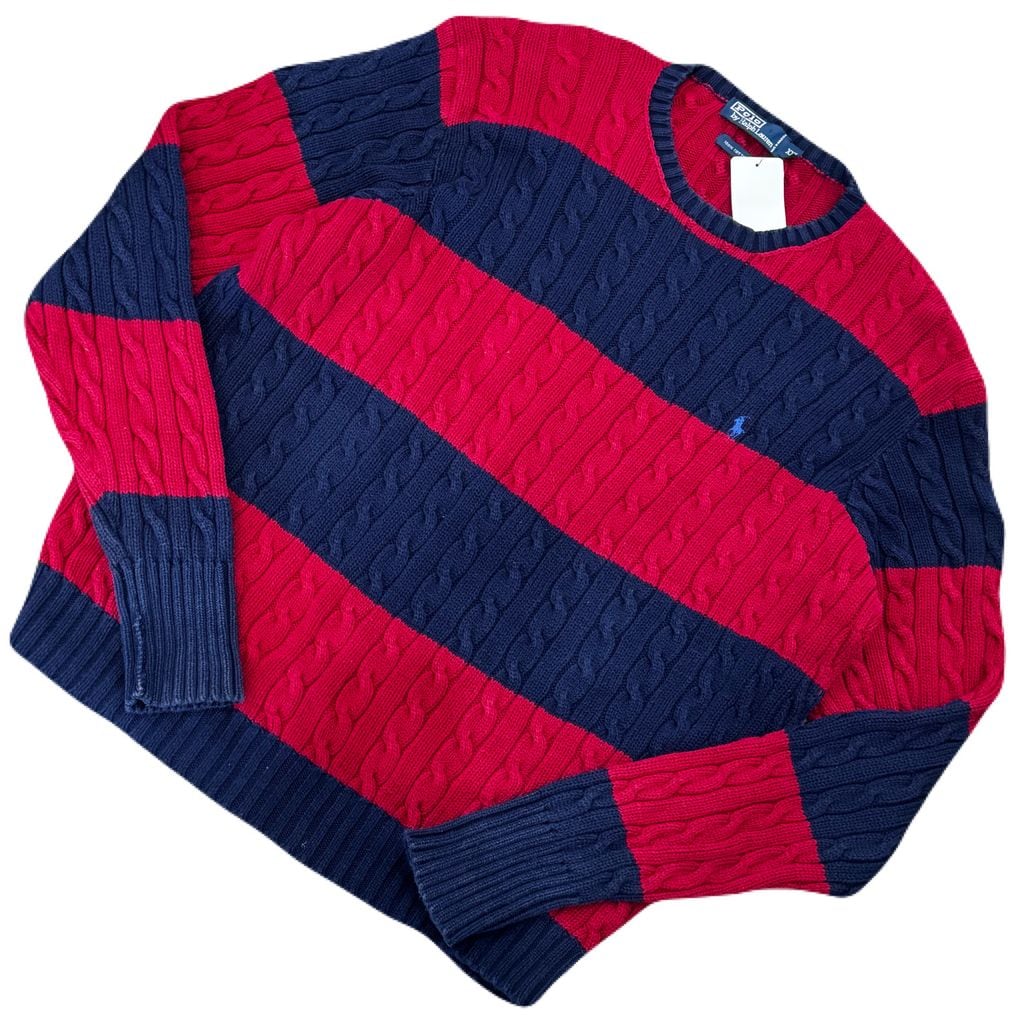 Polo by Ralph Lauren ポロ ラルフローレン ボーダー柄 ケーブルニット コットンニット 赤×紺 XXLサイズ No.EA57
