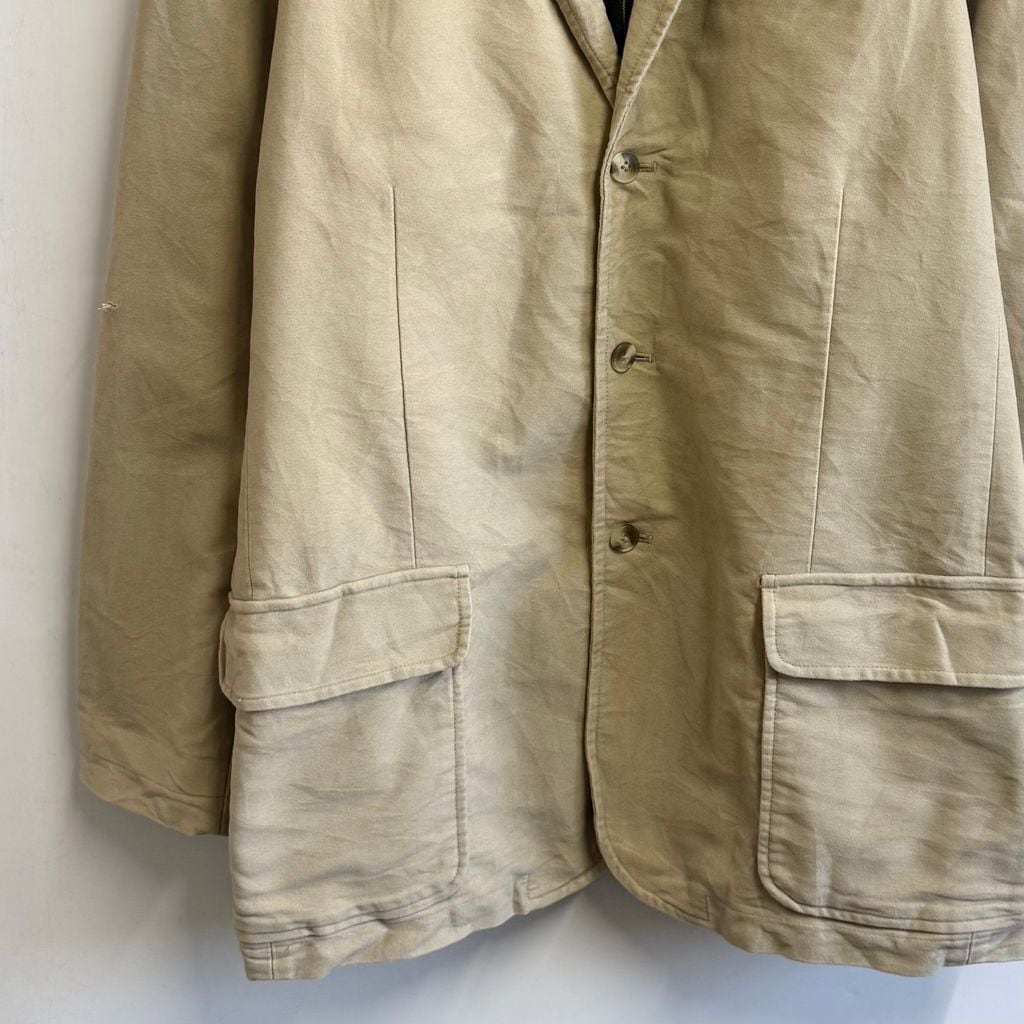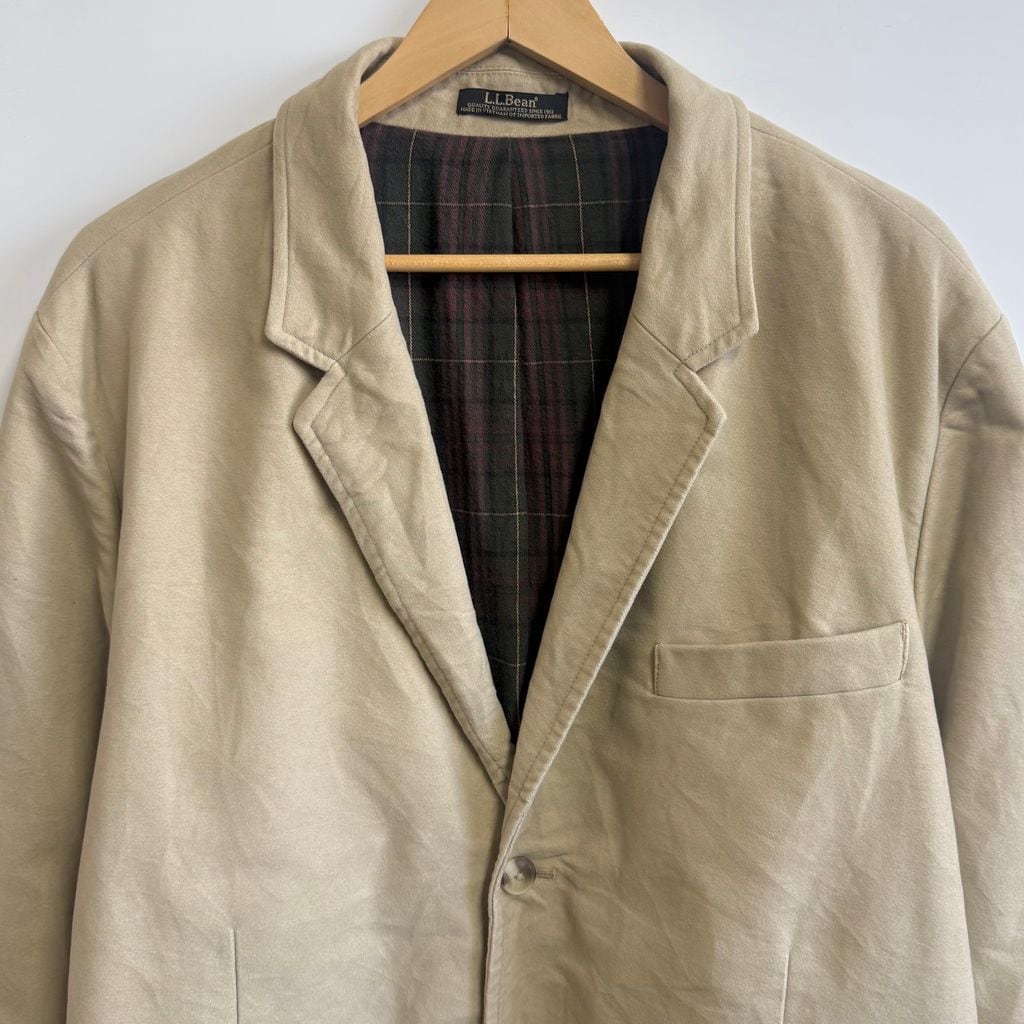 L.L.Bean エルエルビーン コットンテーラードジャケット 裏地チェック柄 センターベント フロントボタン ベージュ 52サイズ No.L995