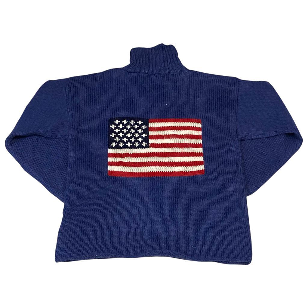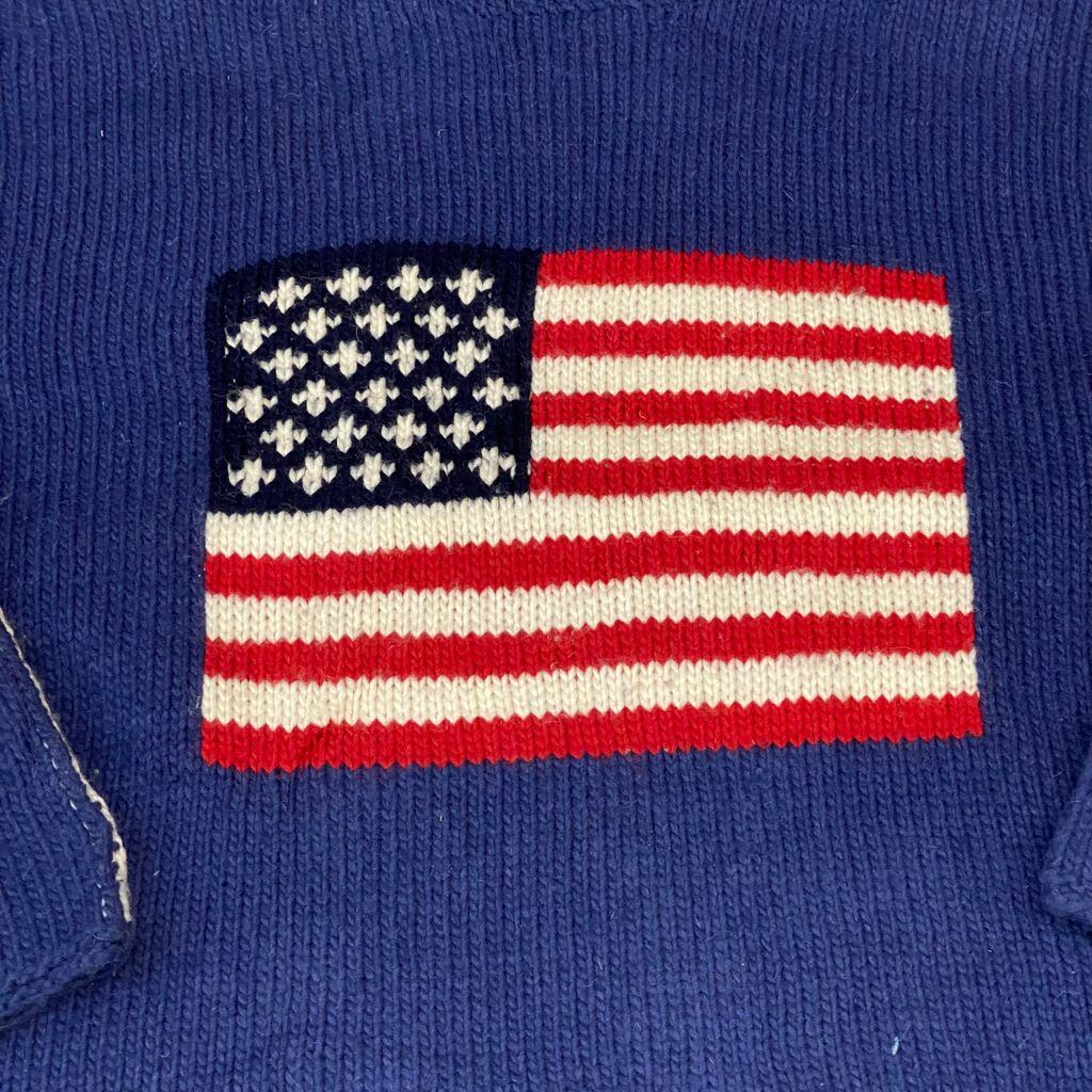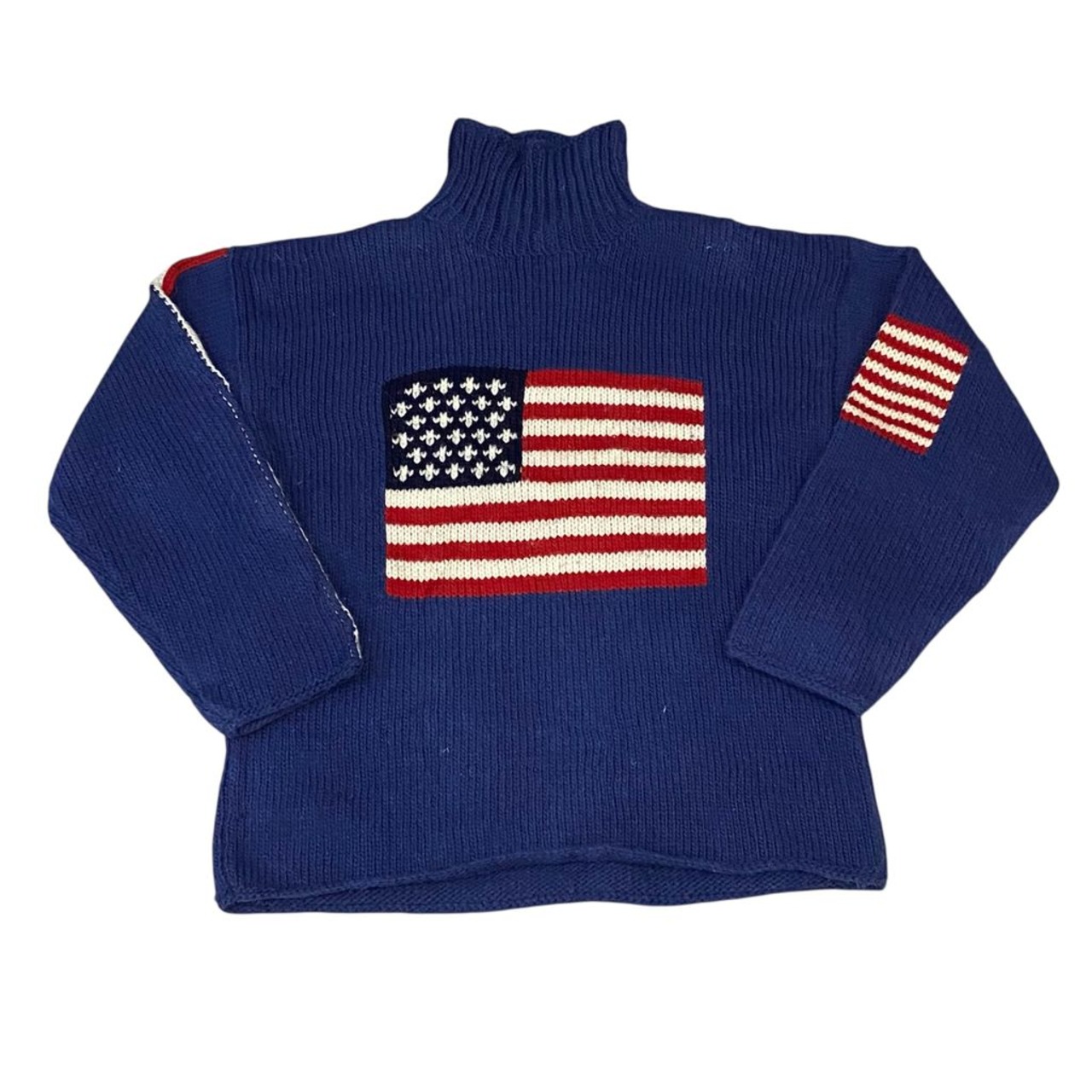 アメリカ 星条旗 両面 ハイネック エクアドルニット プルオーバー 青×赤×白 No.S073