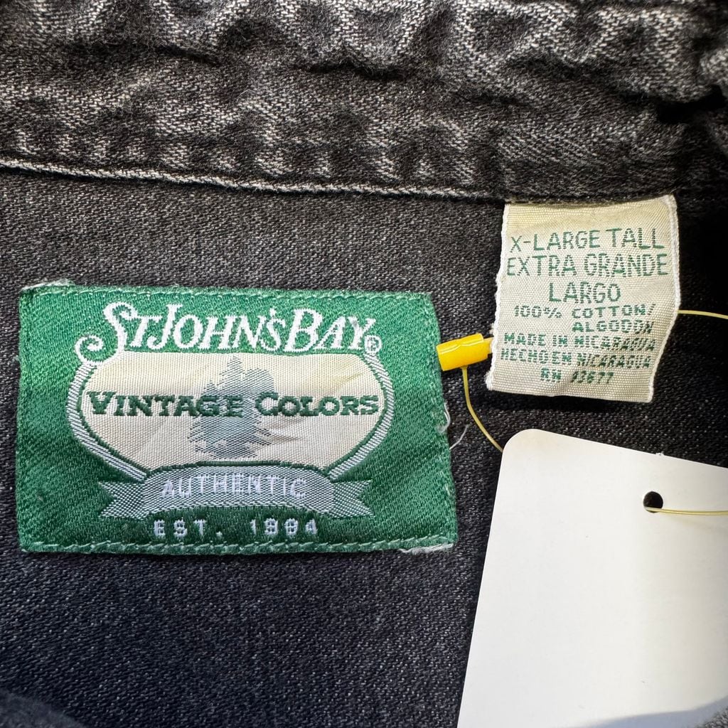 90s ST JOHN'S BAY VINTAGE COLORS セントジョンズベイ ブラックデニム ボタンダウンシャツ 長袖シャツ 黒 XLサイズ No.EA62