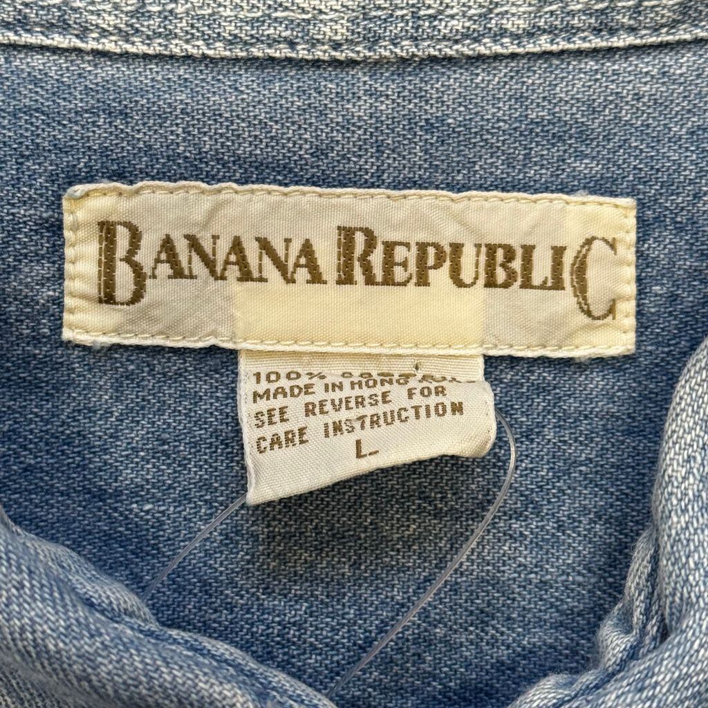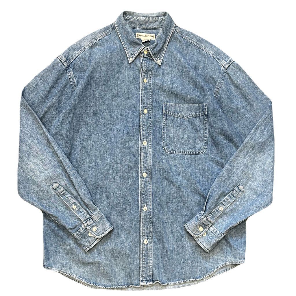 90s BANANA REPUBLIC バナナリパブリック ボタンダウン コットンデニム 長袖シャツ ライトブルー Lサイズ No.EA64