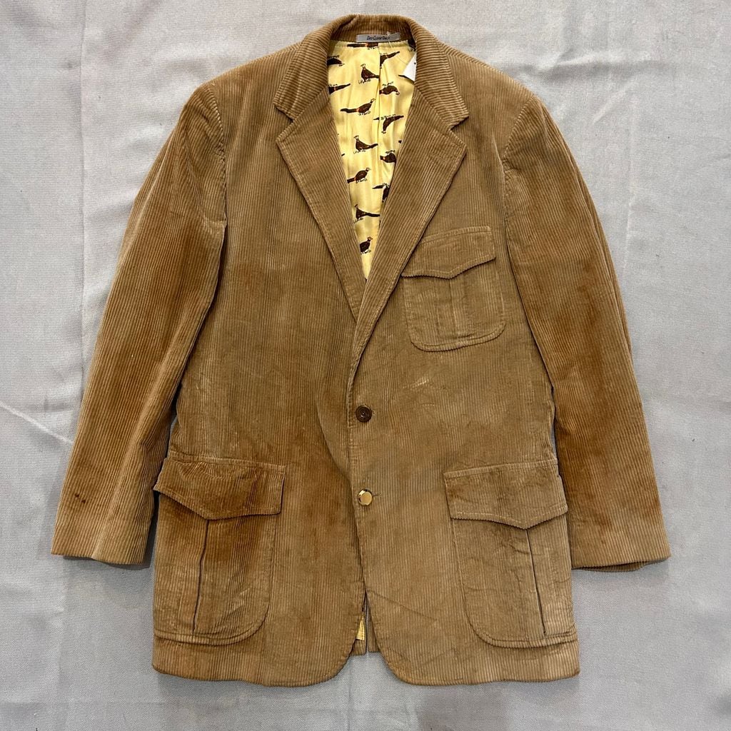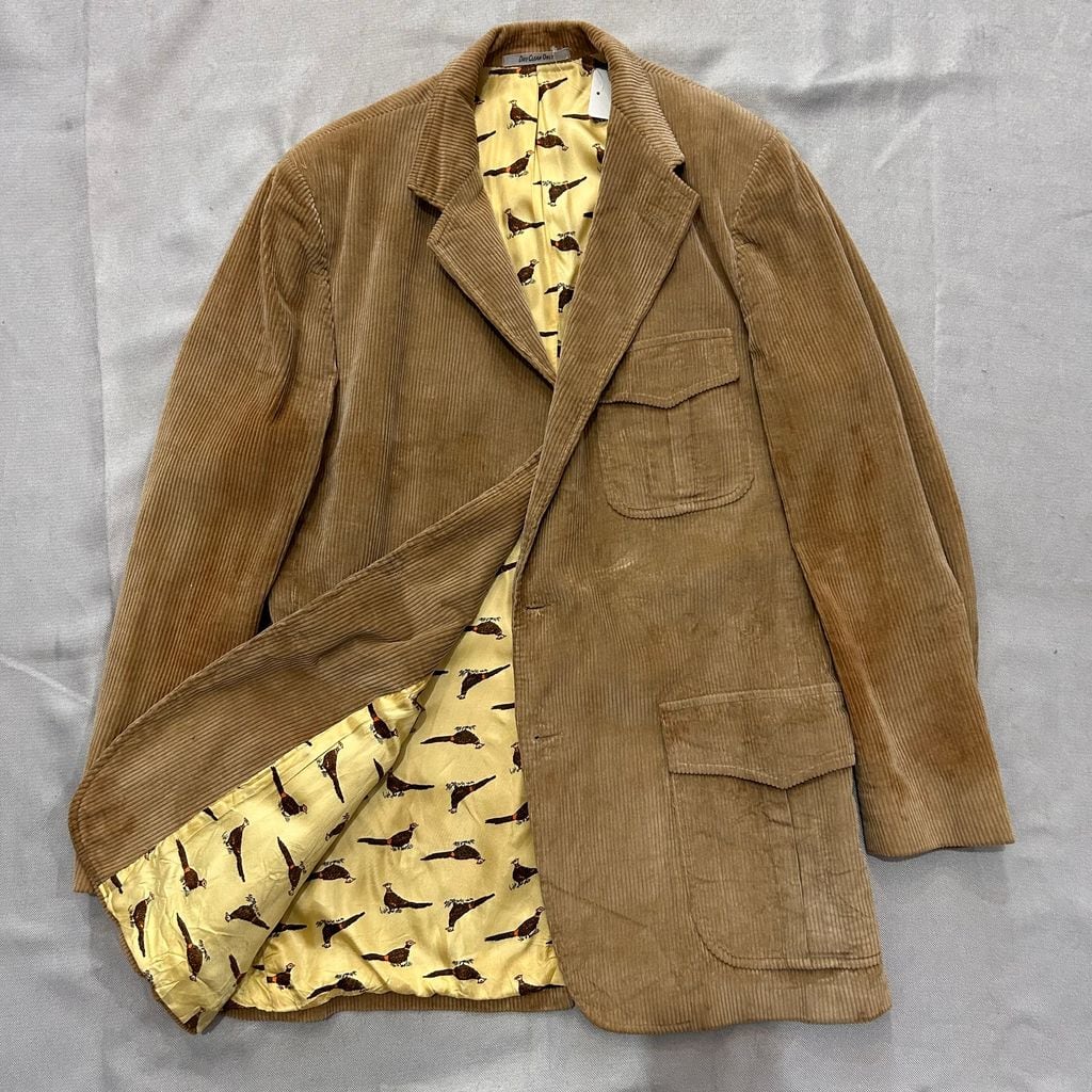 M. Gubin&Son テーラードジャケット 太畝 コーデュロイ 鳥柄 ベージュ NO.T192