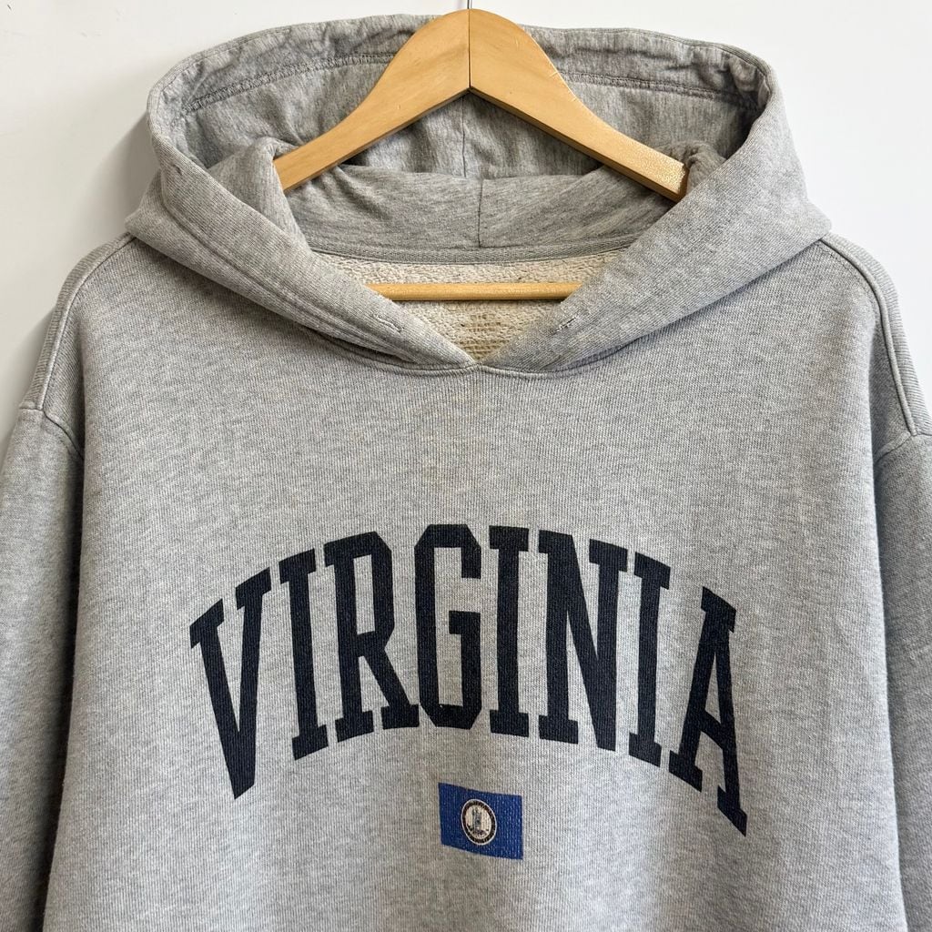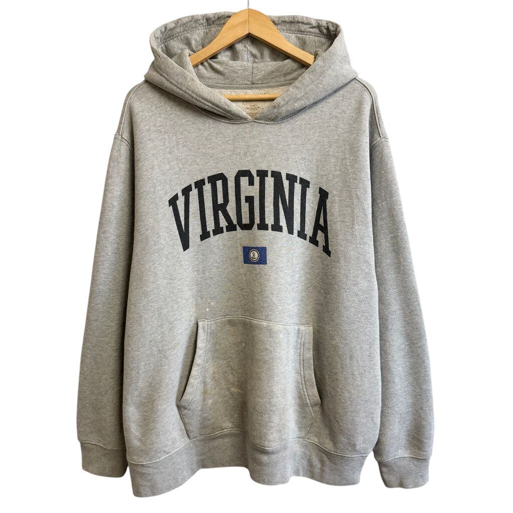 フロントプリント VIRGINIA バージニア 旗 Flag フーディー パーカー ポケット付き グレー No.M006