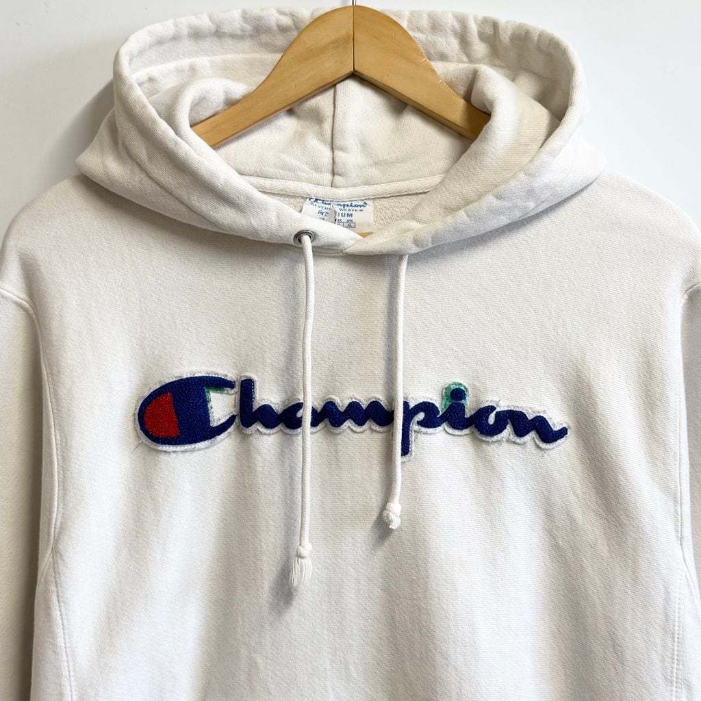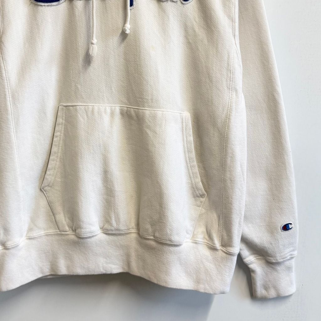 Champion チャンピオン REVERSE WEAVE ロゴワッペン パイル地 フーディー パーカー ポケット付き 白 XLサイズ No.M007