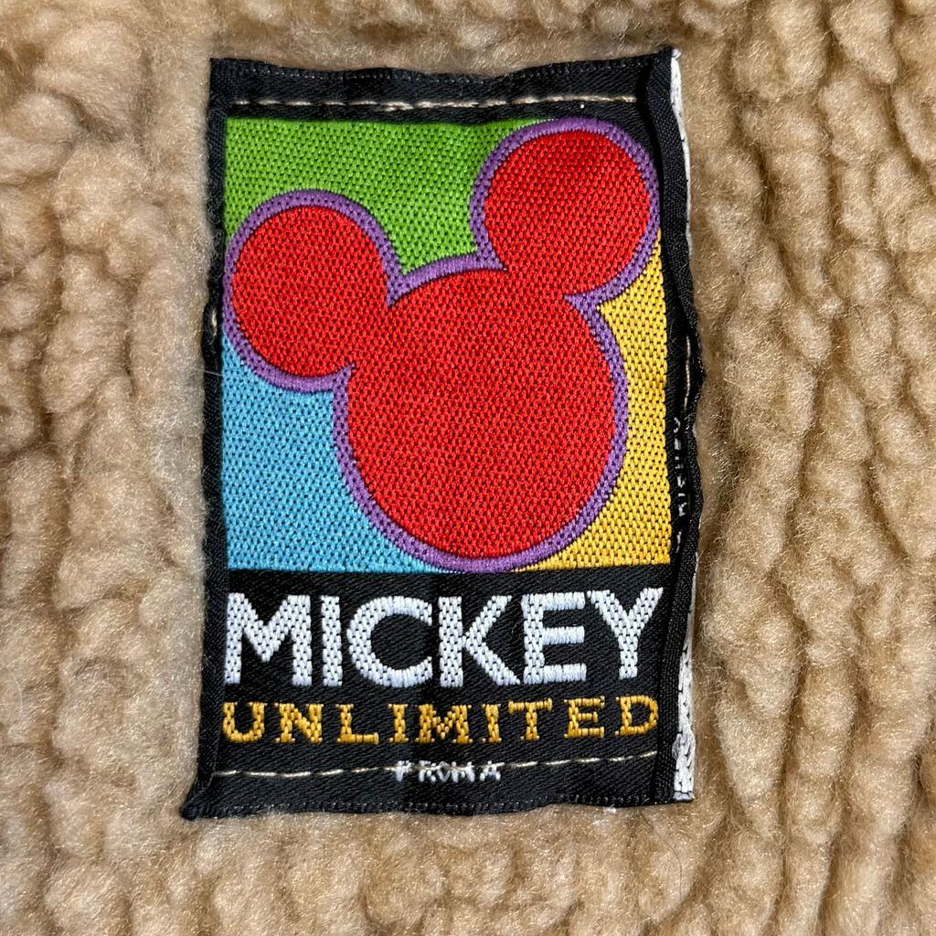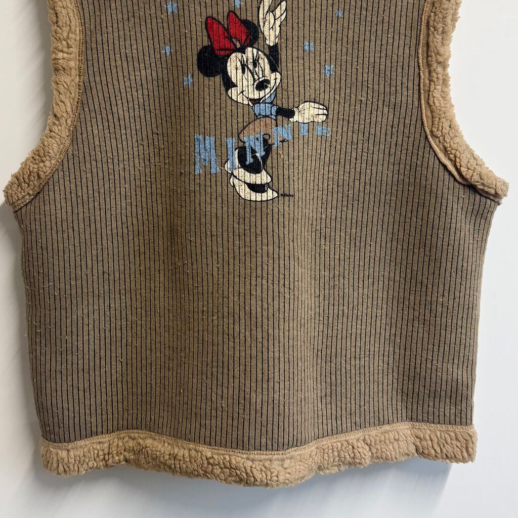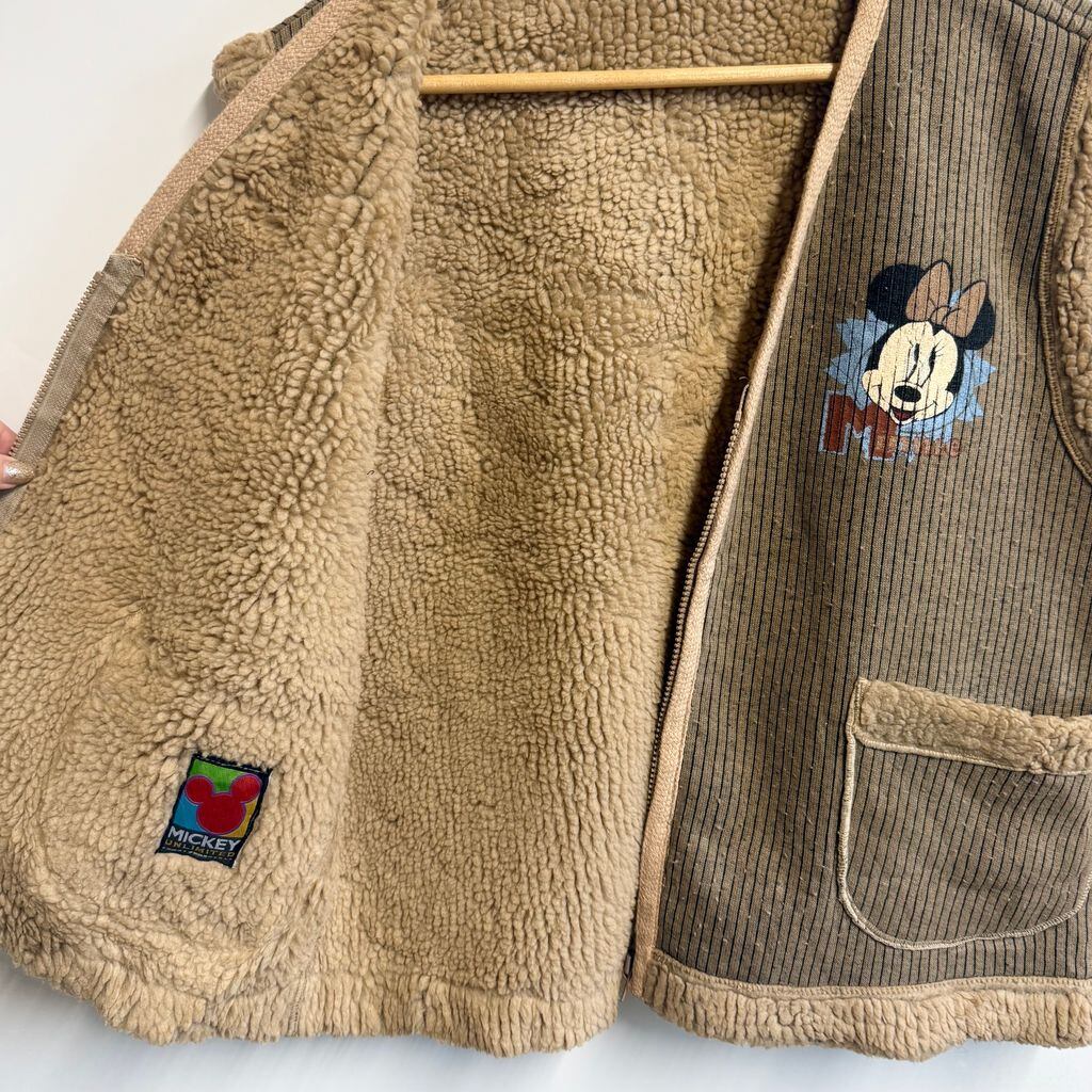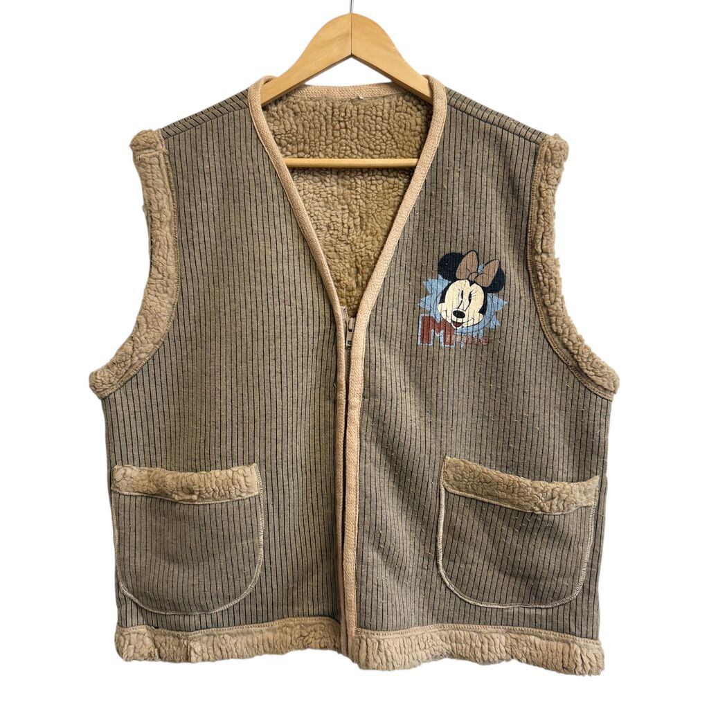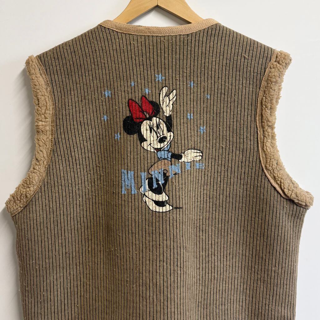 90's vintage ビンテージ MICKEY UNLIMITED ボアベスト MINNIE ミニーちゃん 両面プリント ストライプ ベージュ×ブラウン×黒 No.M008