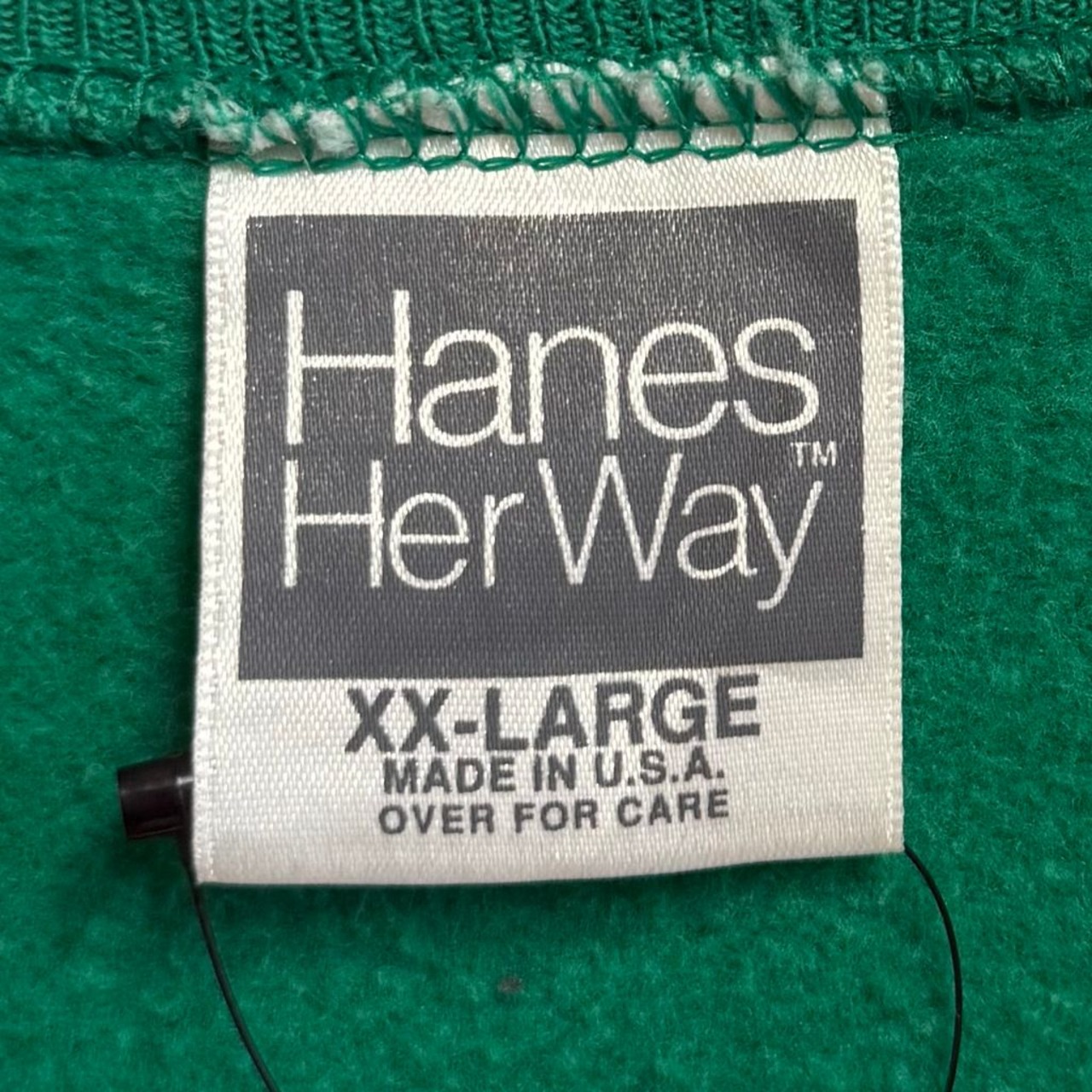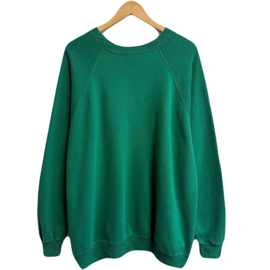 〜90's USA製 Hanes ヘインズ Her Way ラグランスウェット トレーナー 裏起毛 無地 緑 グリーン XXLサイズ No.M009