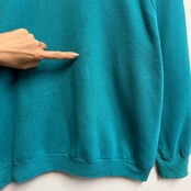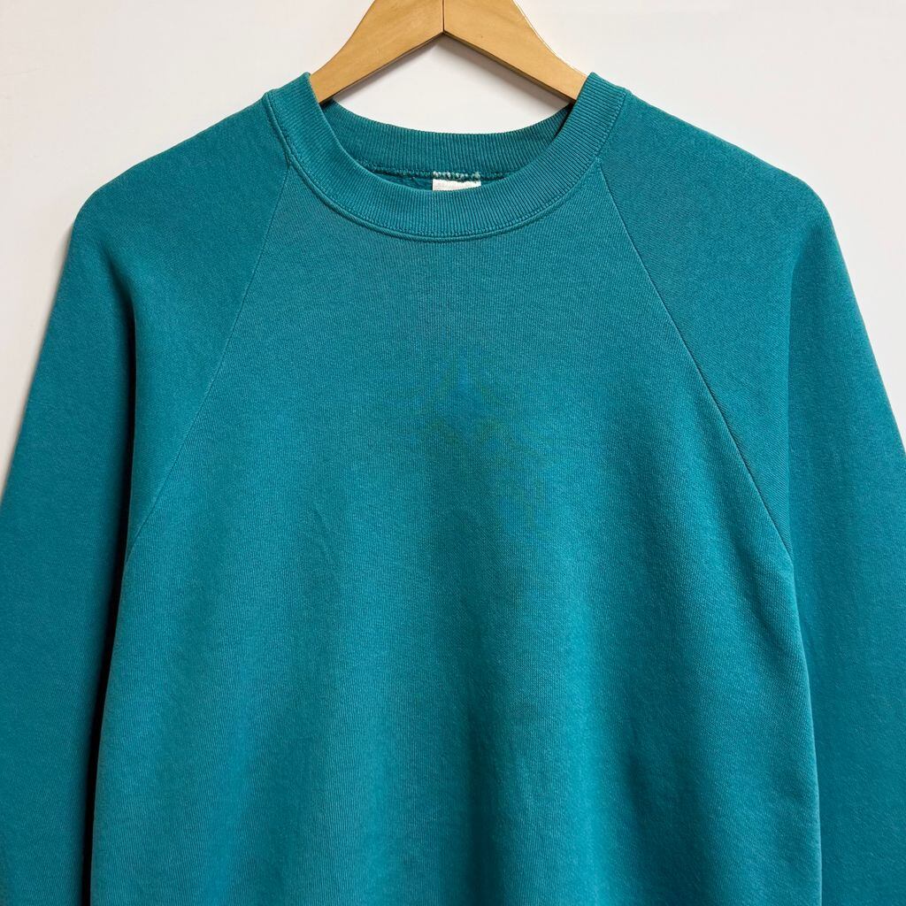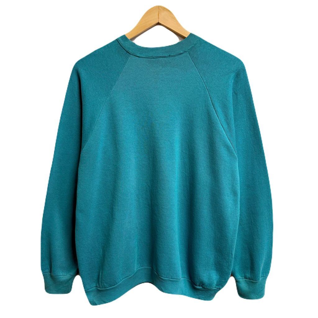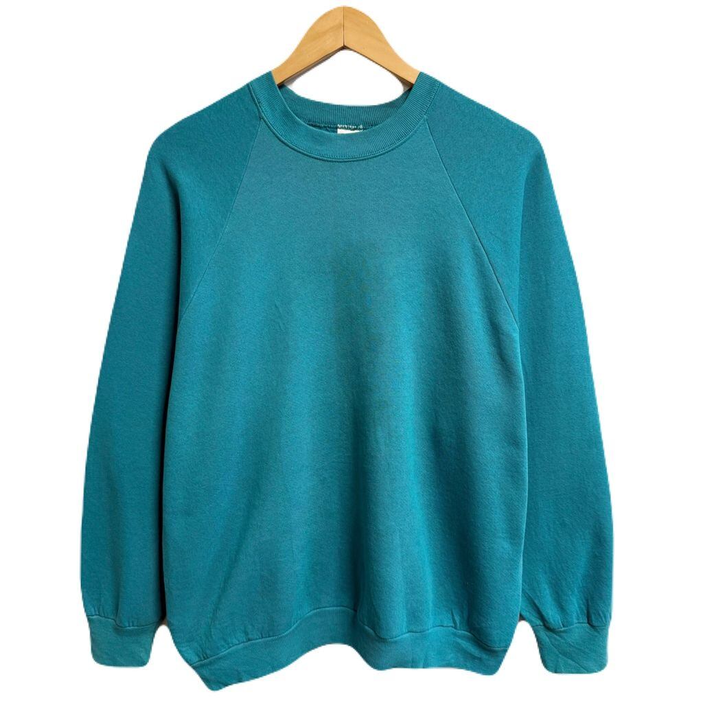 〜90's USA製 FRUIT OF THE LOOM フルーツオブザルーム ラグランスウェット トレーナー 無地 ターコイズブルー Lサイズ No.M011