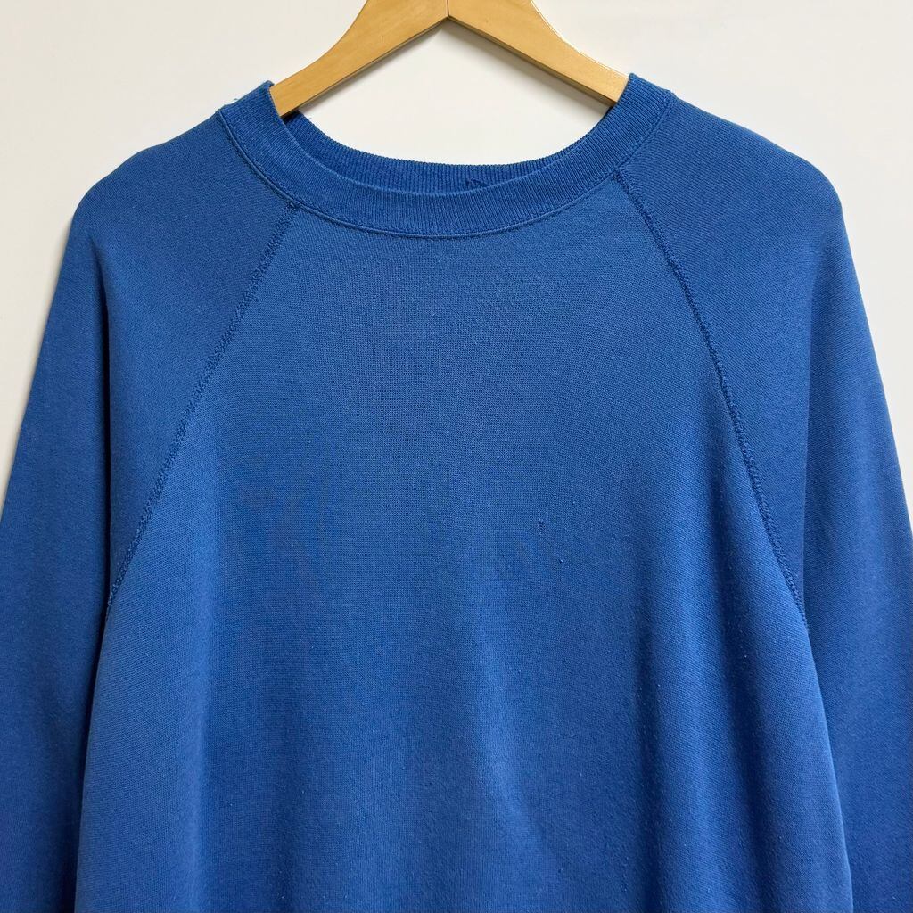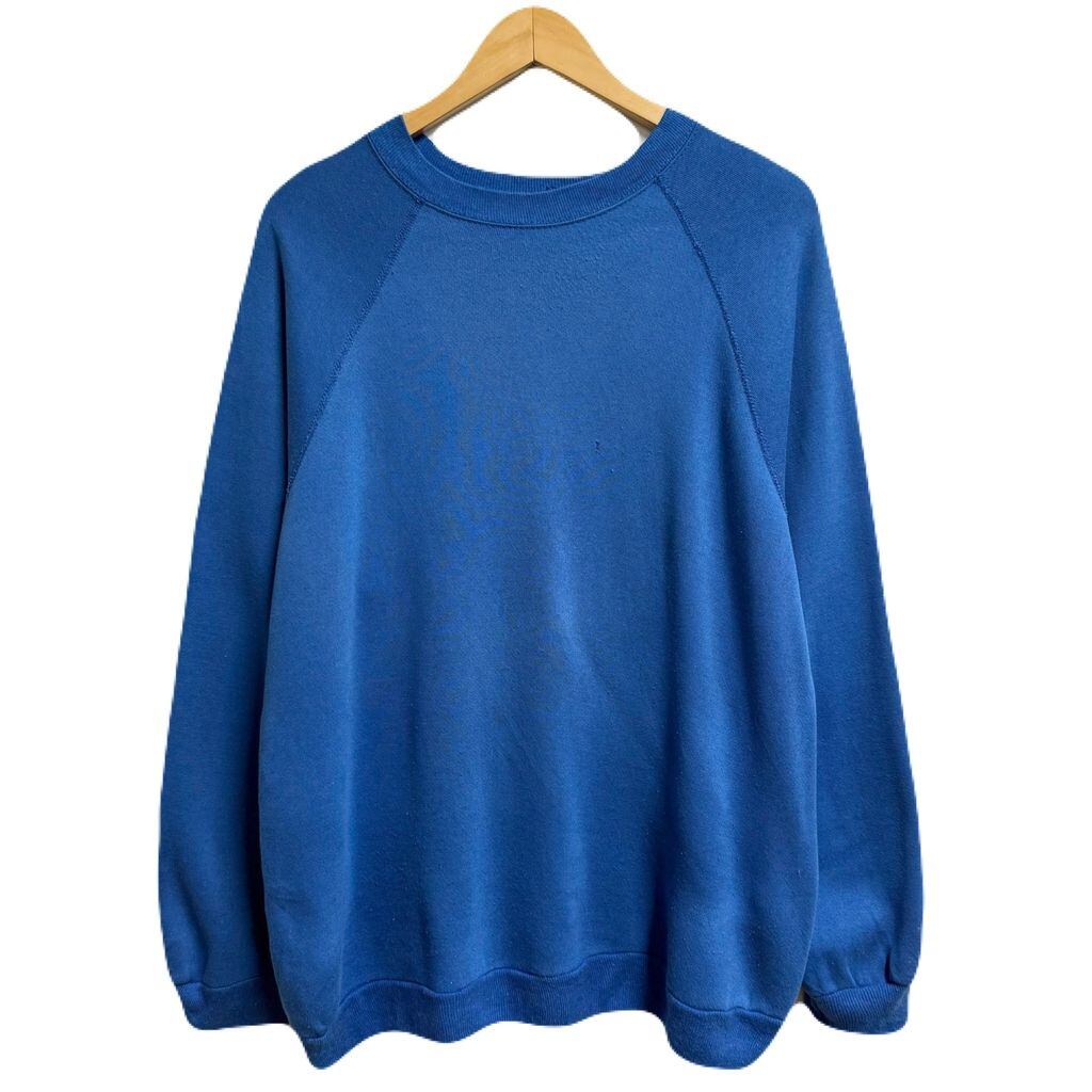 80's〜 USA製 Tultex タルテックス ラグランスウェット トレーナー 裏起毛 無地 青 ブルー XLサイズ No.M012