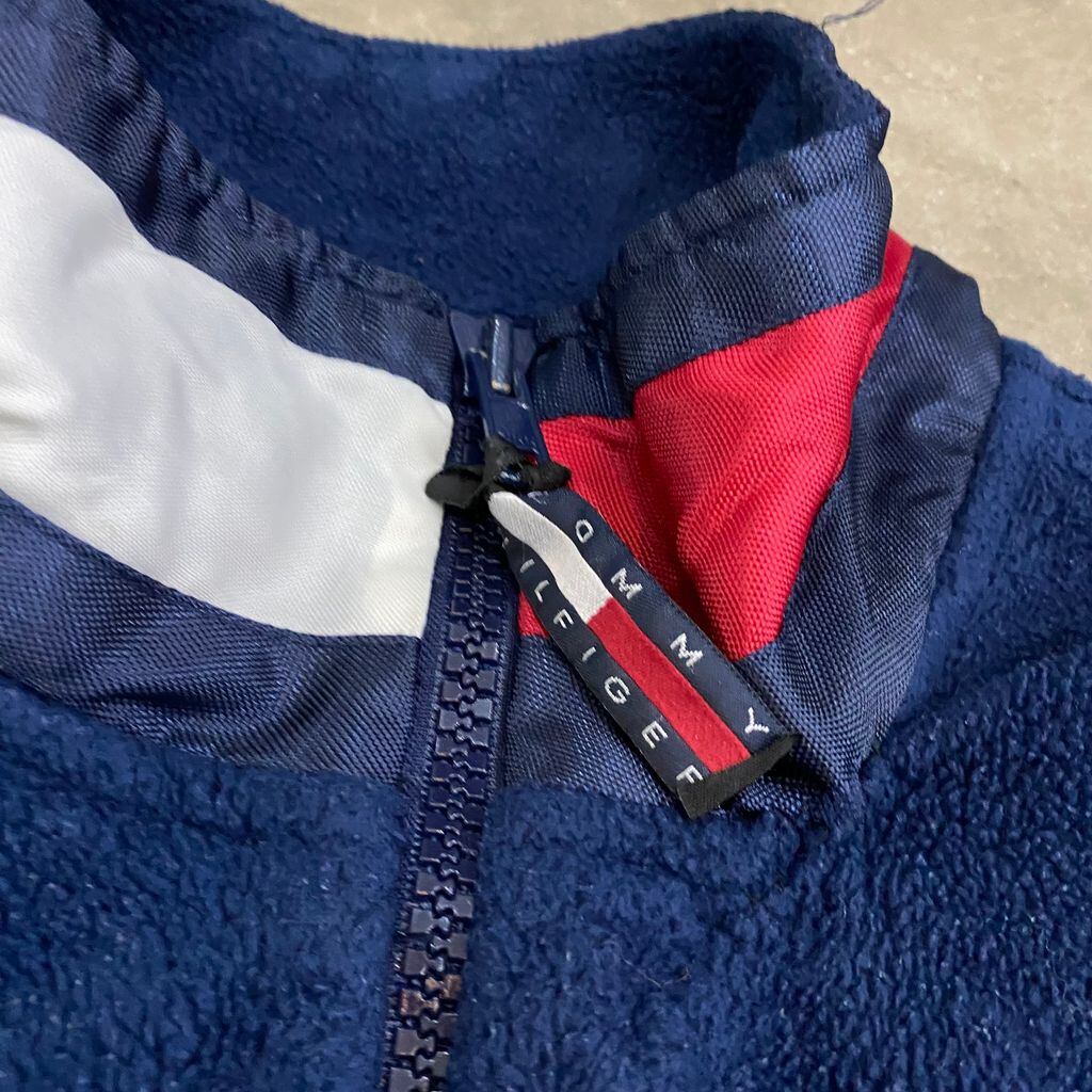 TOMMY HILFIGER トミーヒルフィガー ハーフジップ フリース プルオーバー 胸元ロゴ 紺×白×赤 サイズM No.S076