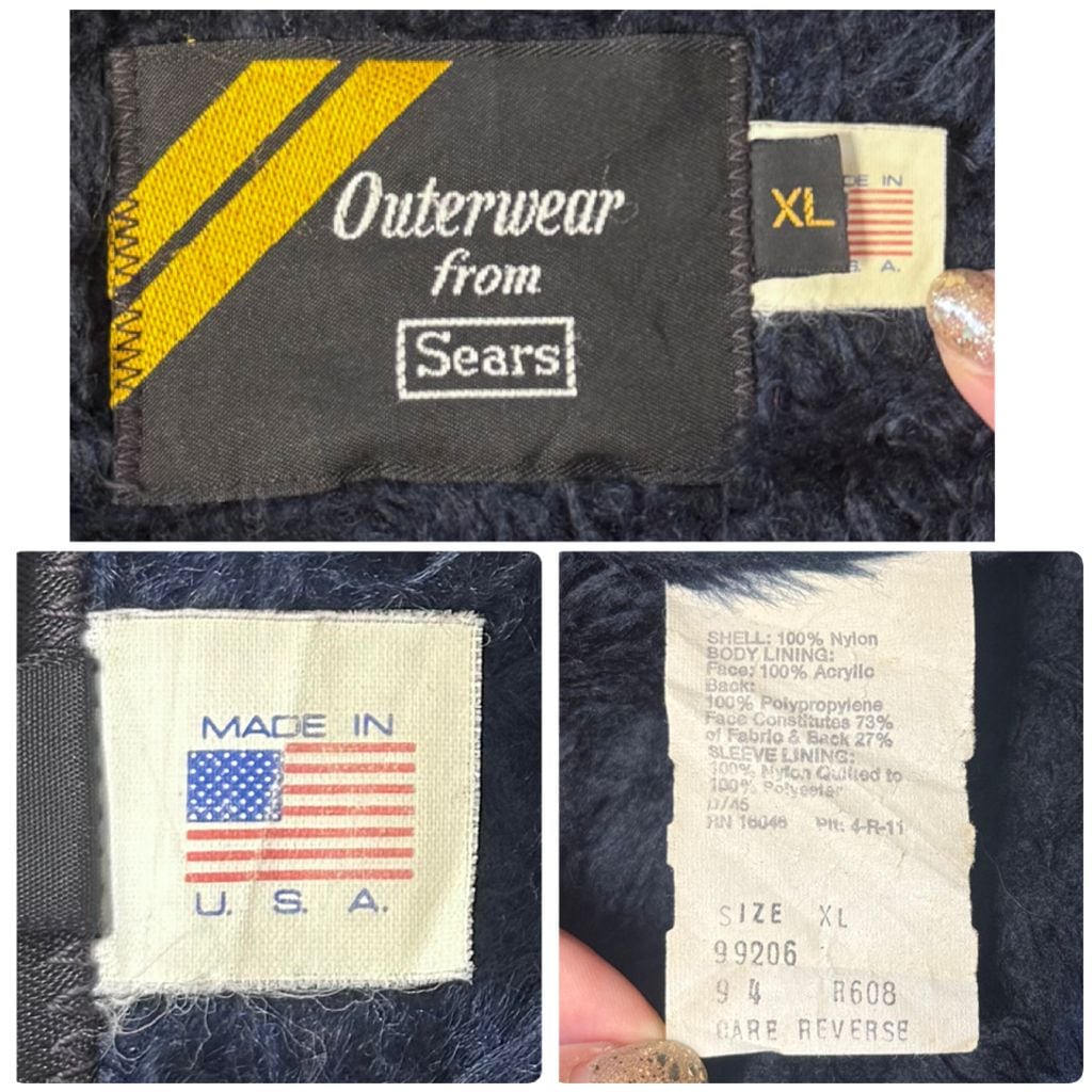 USA製 Sears シアーズ コーチジャケット 裏ボア ボアジャケット スナップボタン 紺 ネイビー XLサイズ No.M020
