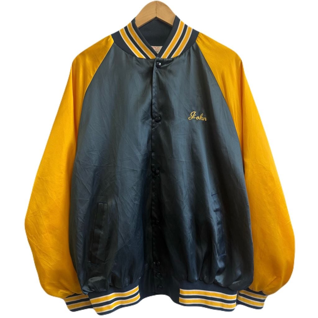 2 MAR RO USA ナイロンスタジャン バックプリント MT.EPHRAIM LITTLE LEAGUE 野球選手 スナップボタン イエロー×ネイビー 2XLサイズ No.M021