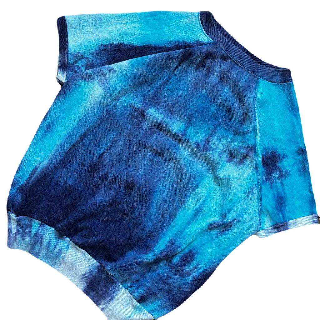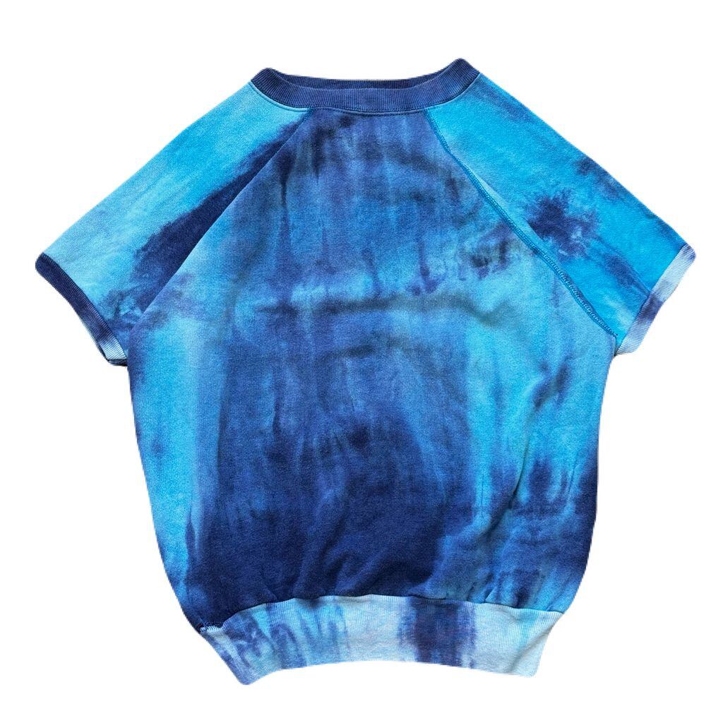 USA製 80s Pannill パニール ラグランスウェット 半袖 タイダイ柄 水色×紫 Lサイズ No.EA68