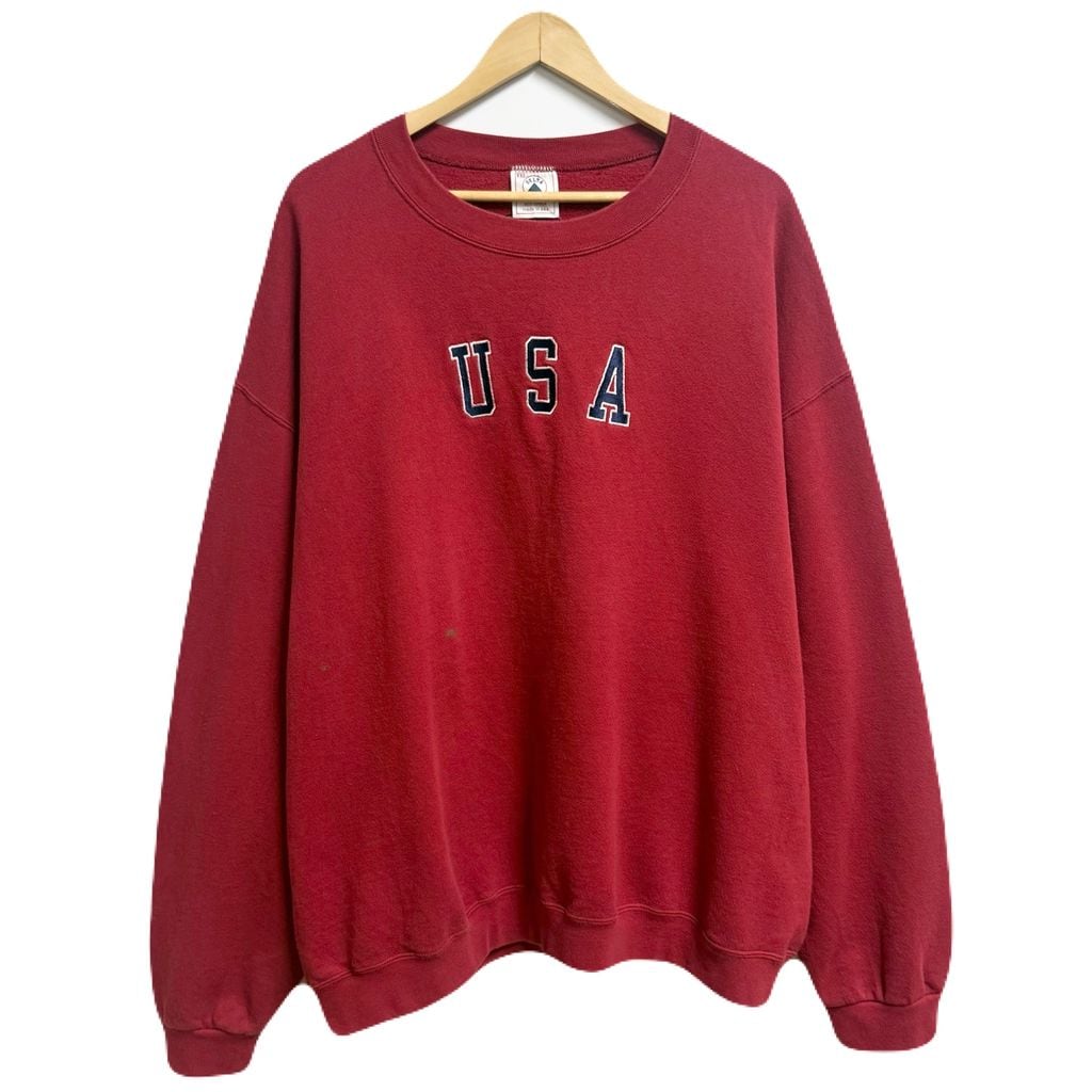 〜90's USA製 DELTA デルタ USA 刺繍 トレーナー スウェット 裏起毛 赤 レッド XXLサイズ No.M033