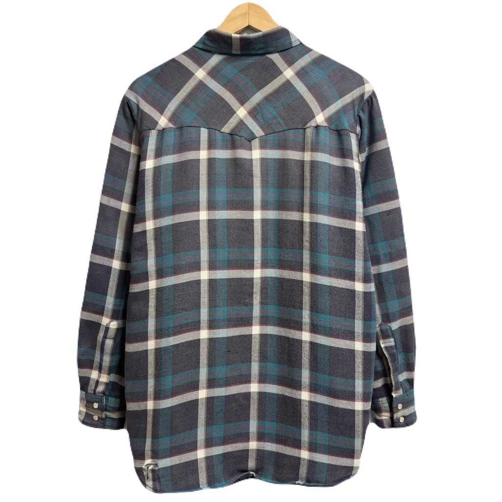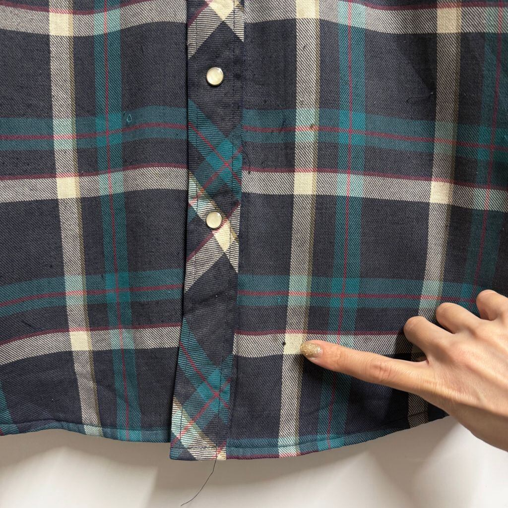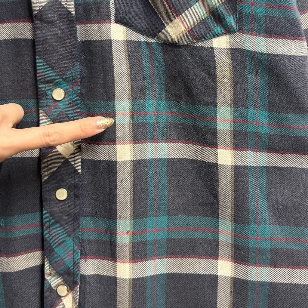 Wrangler ラングラー WESTERN SHIRTS シャツジャケット キルティング裏地 ウエスタンシャツ スナップボタン チェック柄 ポケット付き 厚手長袖シャツ 紺×白×エメラルドグリーン×多色 Mサイズ No.M038