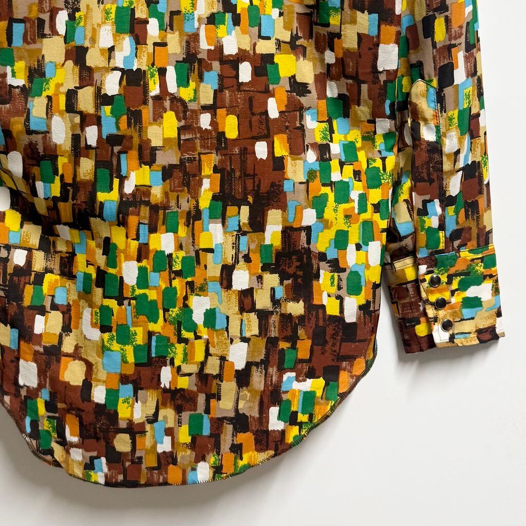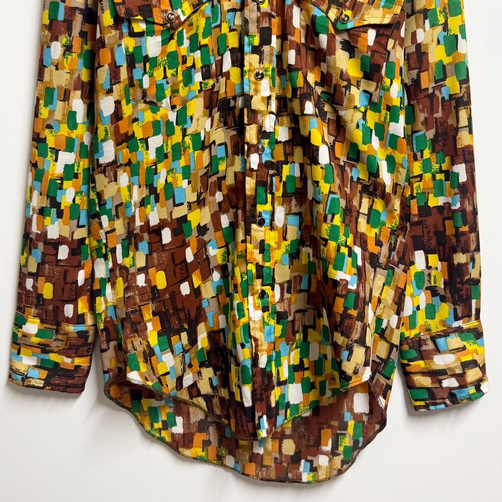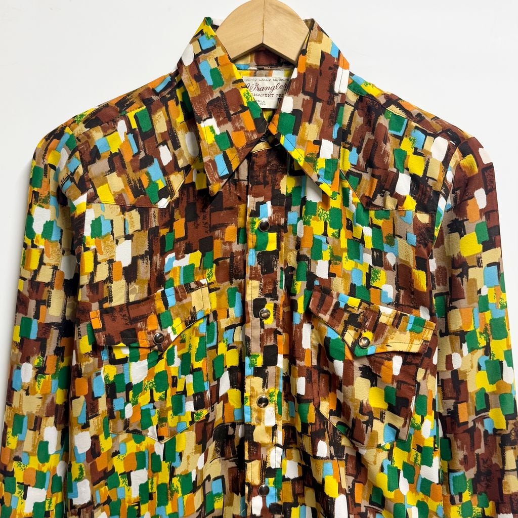 USA製 Wrangler ラングラー PERMANENT PRESS ウエスタンシャツ風 スナップボタン アート 総柄 柄シャツ 長袖シャツ カラフル 多色 Sサイズ No.M039