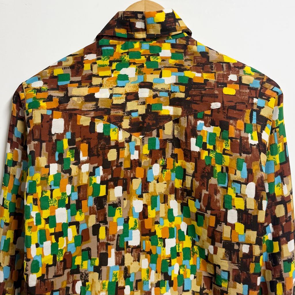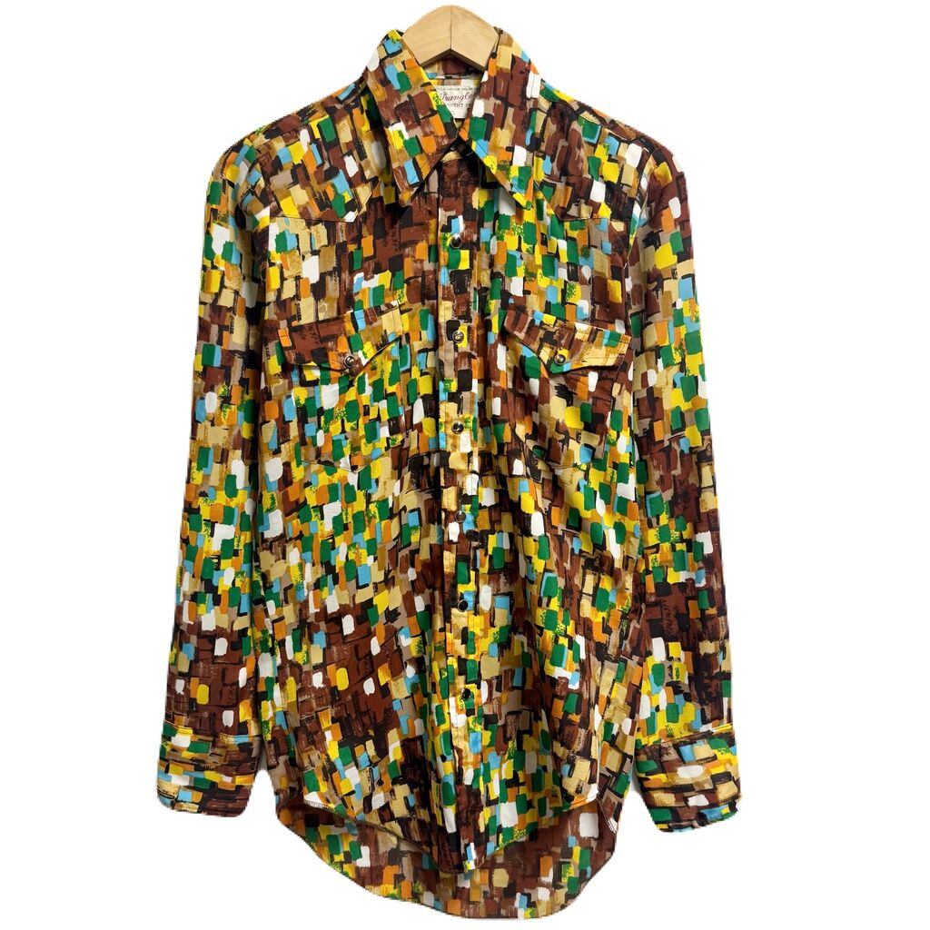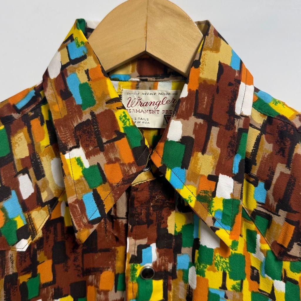 USA製 Wrangler ラングラー PERMANENT PRESS ウエスタンシャツ風 スナップボタン アート 総柄 柄シャツ 長袖シャツ カラフル 多色 Sサイズ No.M039