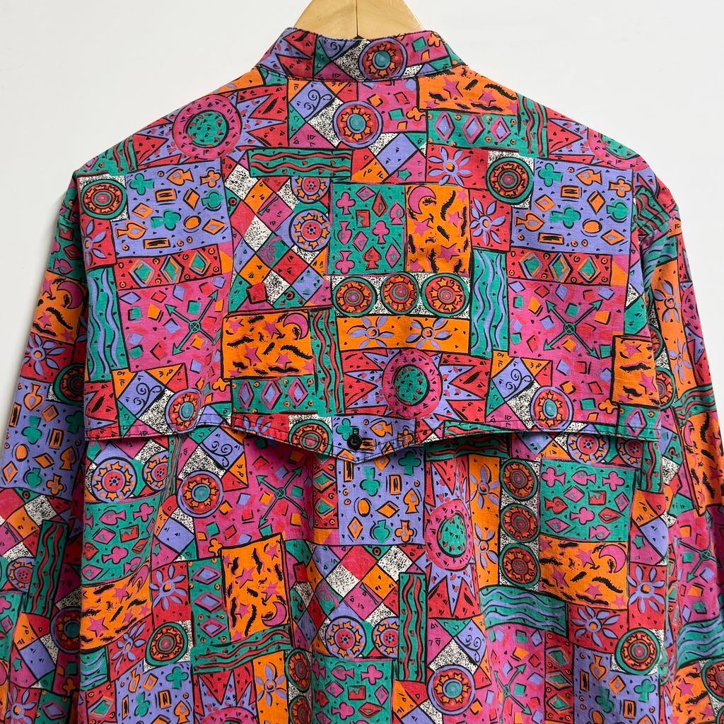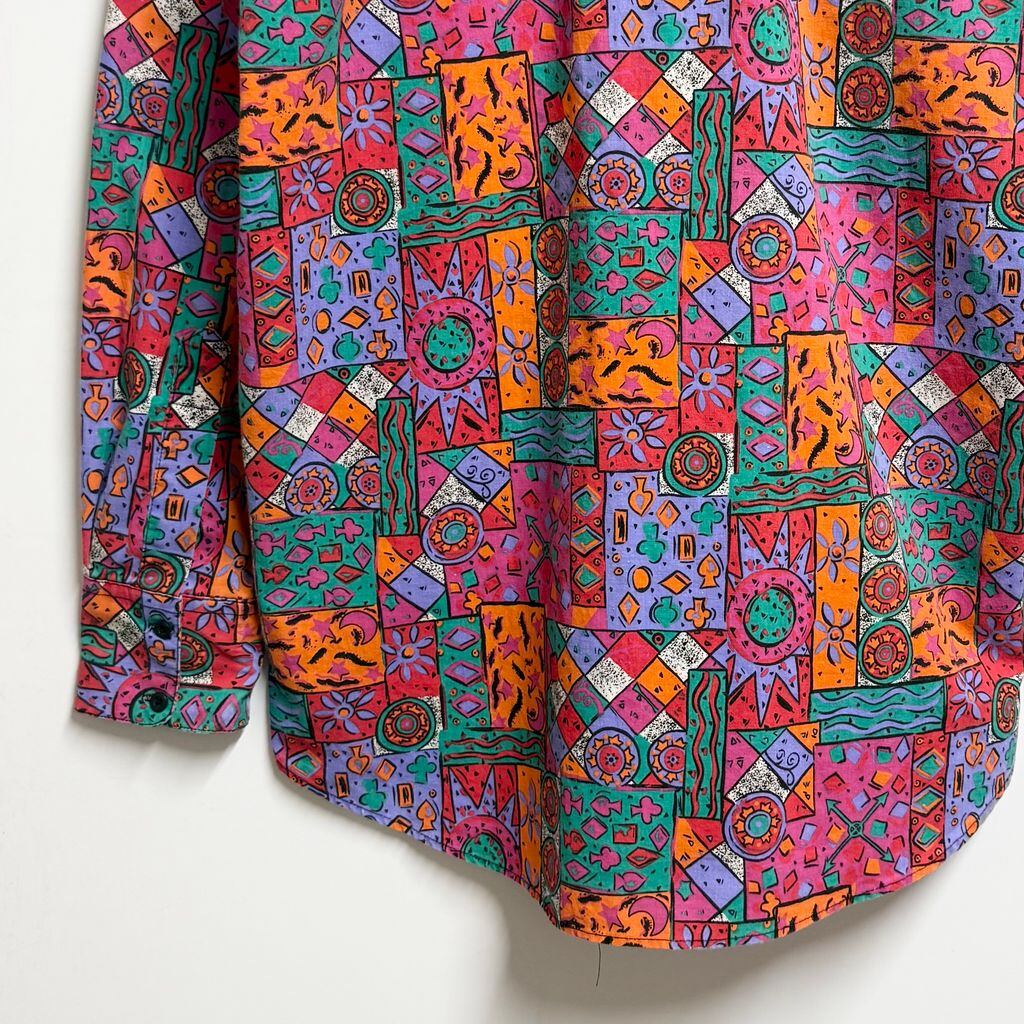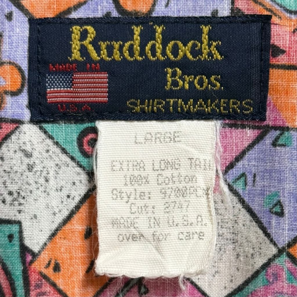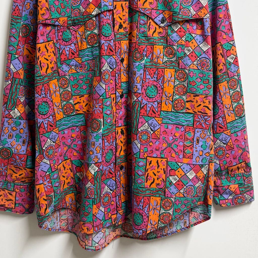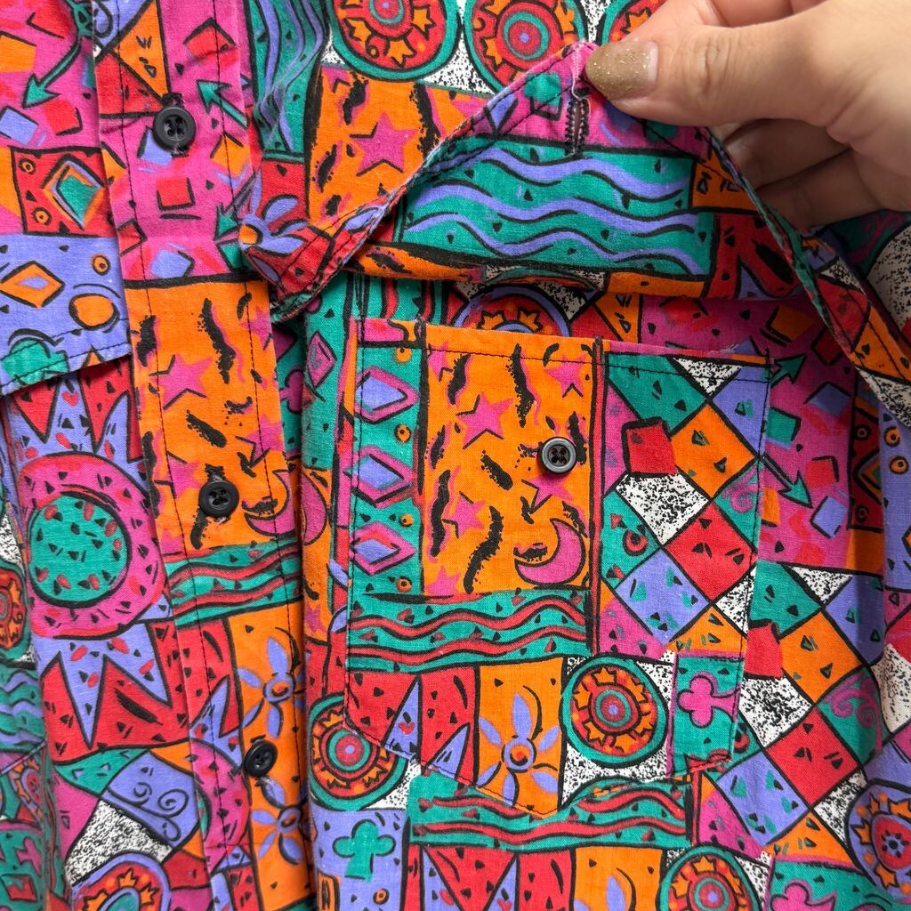 USA製 Ruddock Bros バンドカラー アート 総柄 柄シャツ コットンシャツ ポケット付き 長袖シャツ カラフル 多色 Lサイズ No.M040