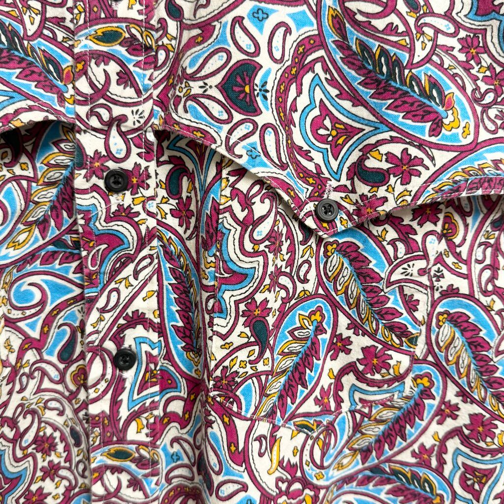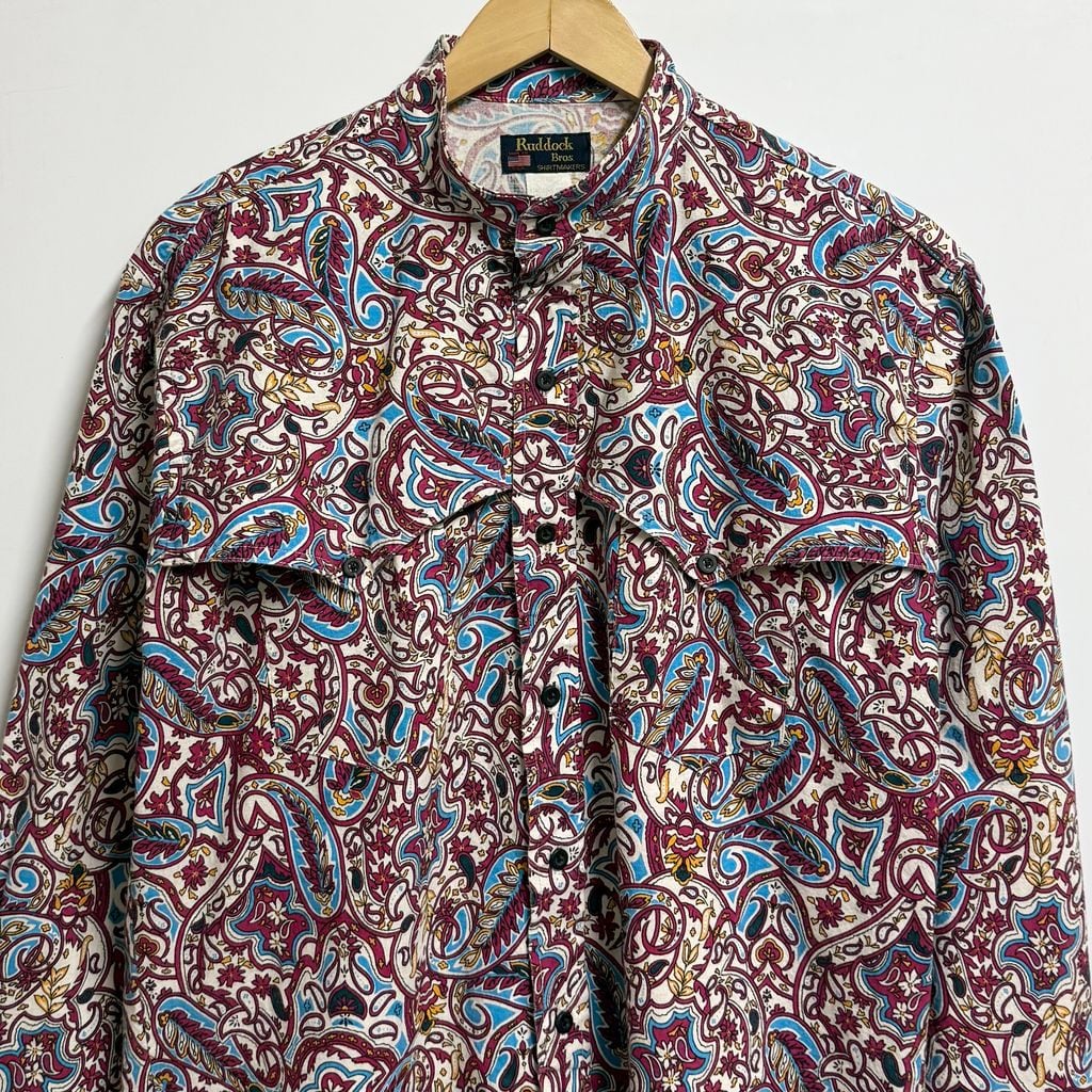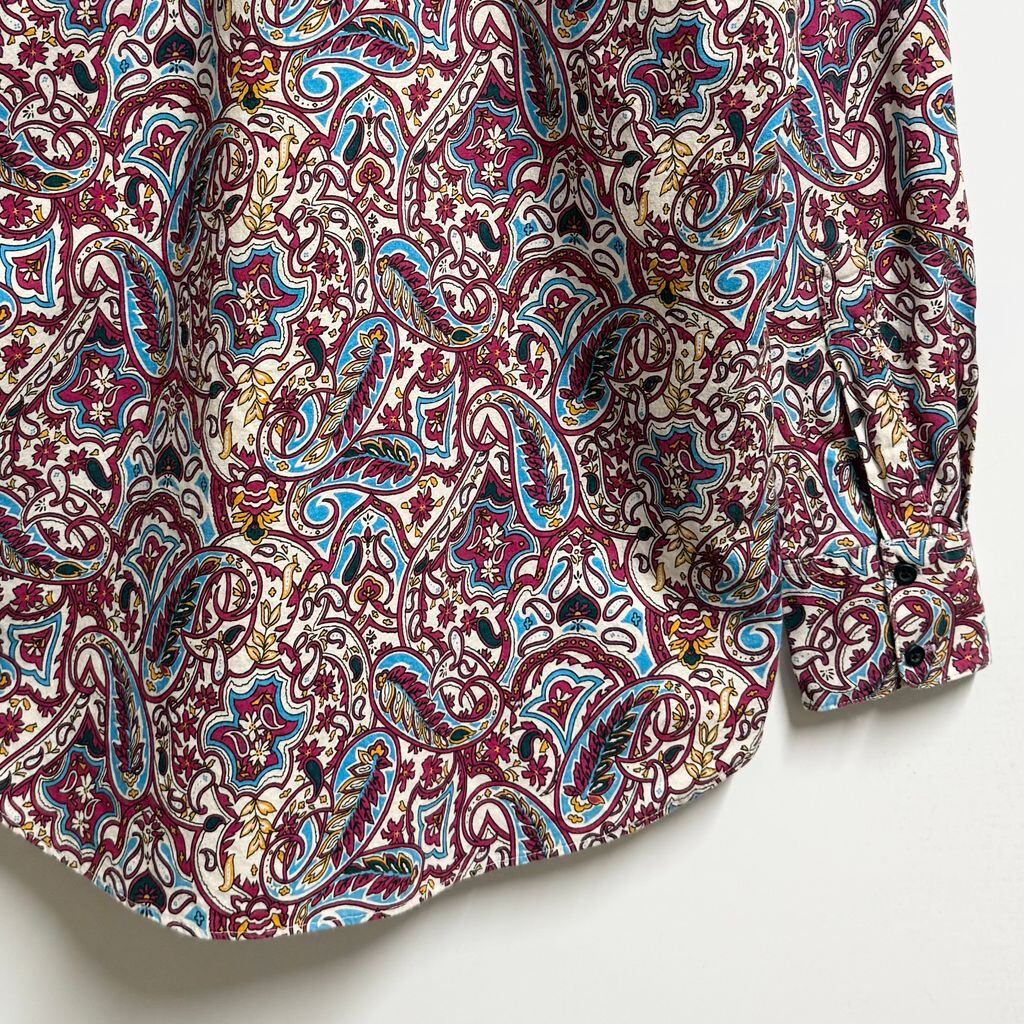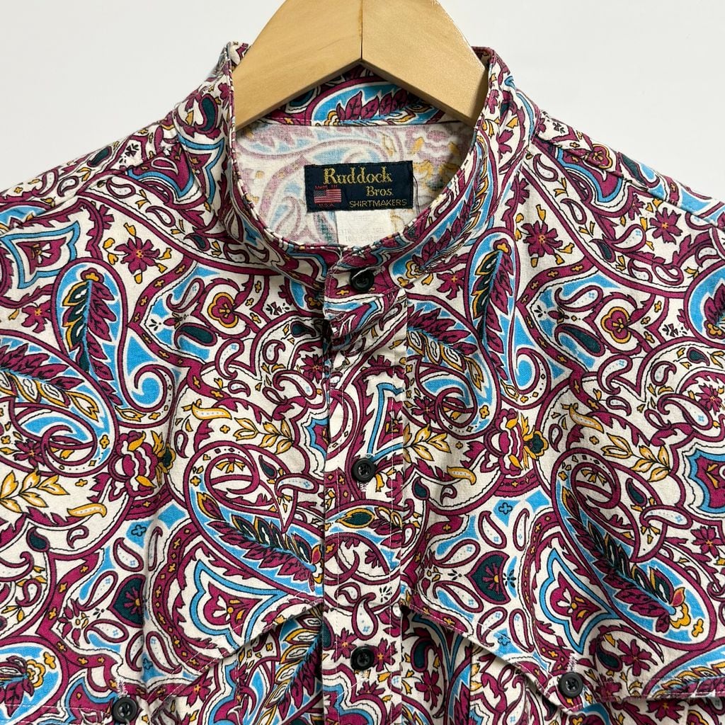 USA製 Ruddock Bros バンドカラー アート ペイズリー柄 総柄 柄シャツ コットンシャツ ポケット付き 長袖シャツ カラフル 多色 Lサイズ No.M041