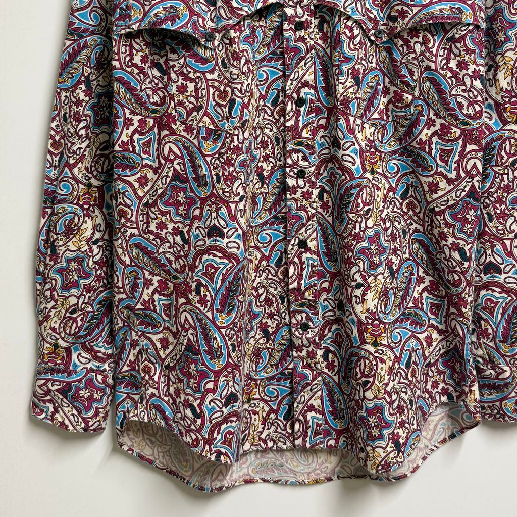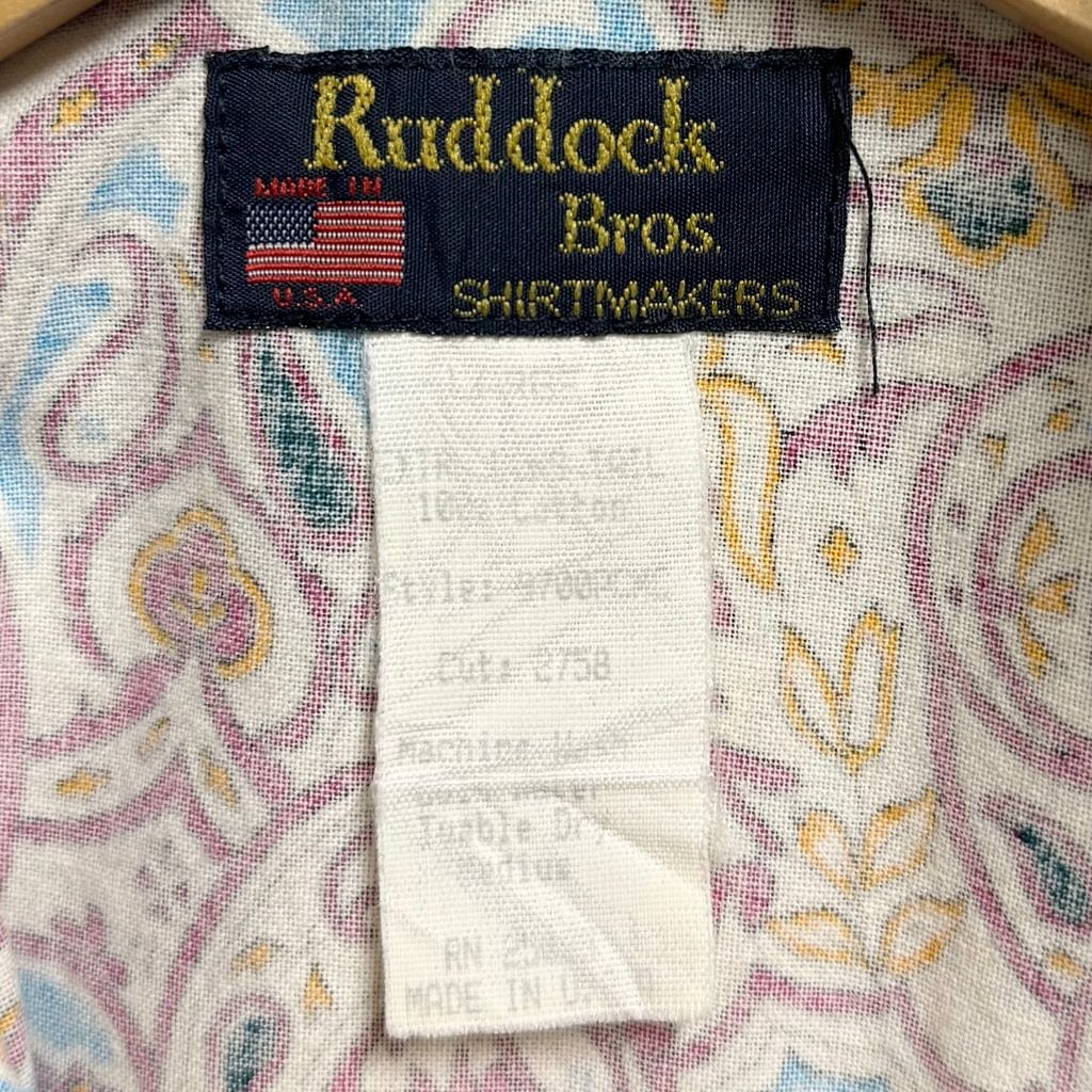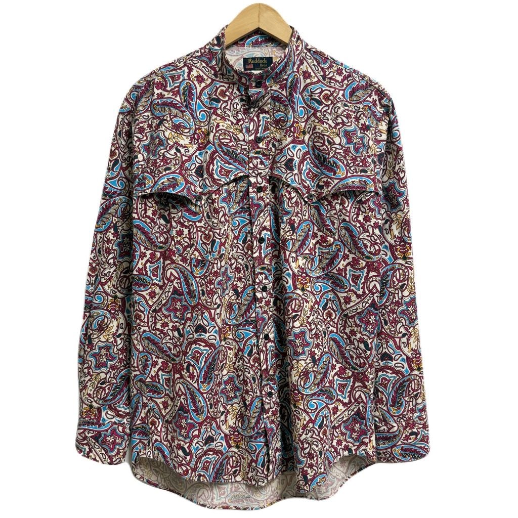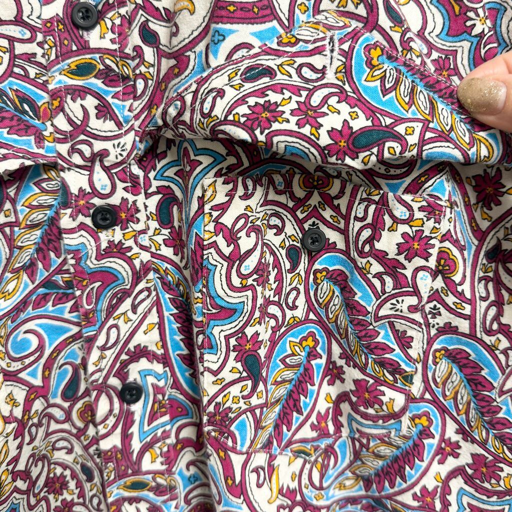 USA製 Ruddock Bros バンドカラー アート ペイズリー柄 総柄 柄シャツ コットンシャツ ポケット付き 長袖シャツ カラフル 多色 Lサイズ No.M041