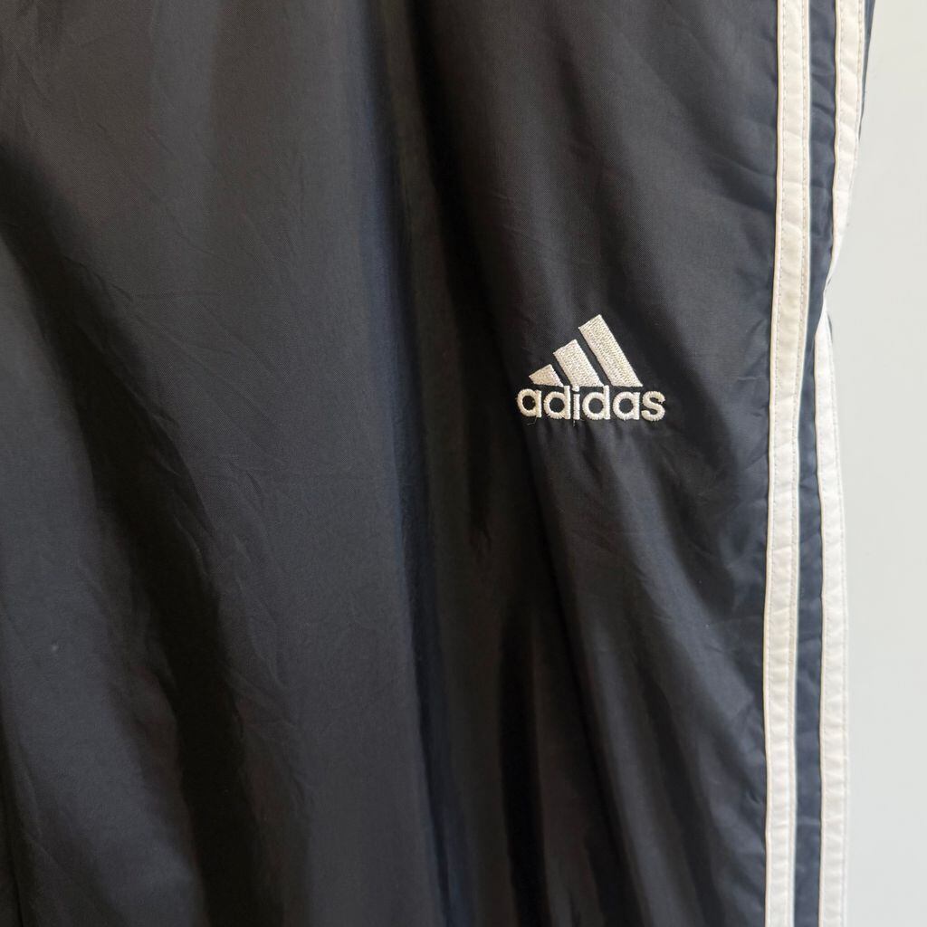 adidas アディダス ナイロンパンツ トラックパンツ シャカシャカパンツ ワンポイントロゴ 刺繍 黒 Mサイズ No.M043