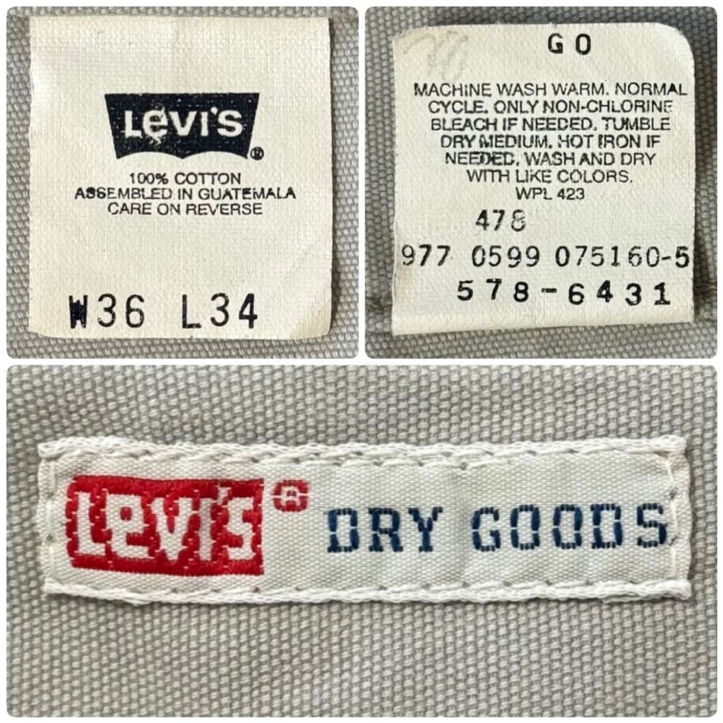 90's Levi's リーバイス DRY GOODS ワークパンツ コットンパンツ ライトグレー W 36×34 No.M044