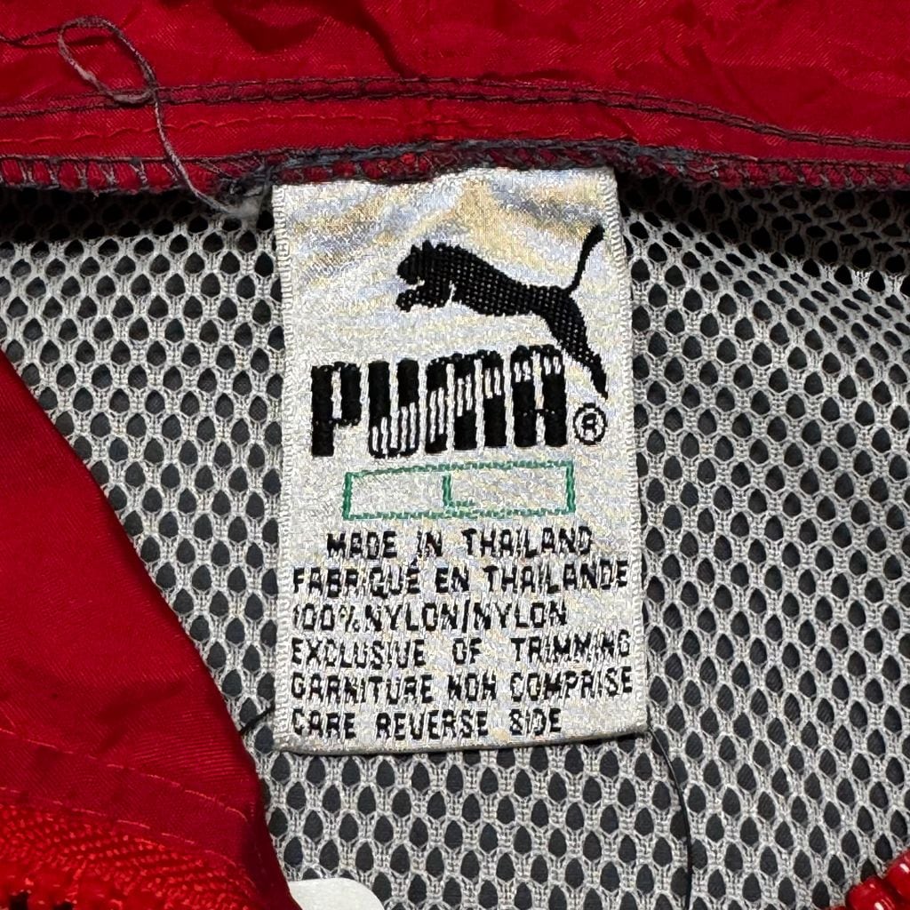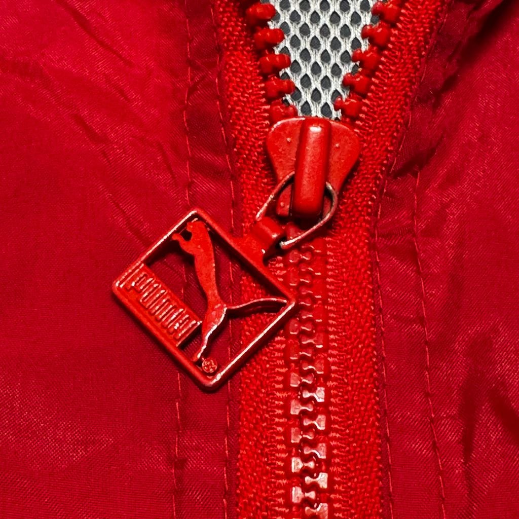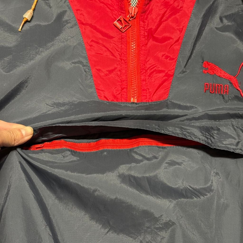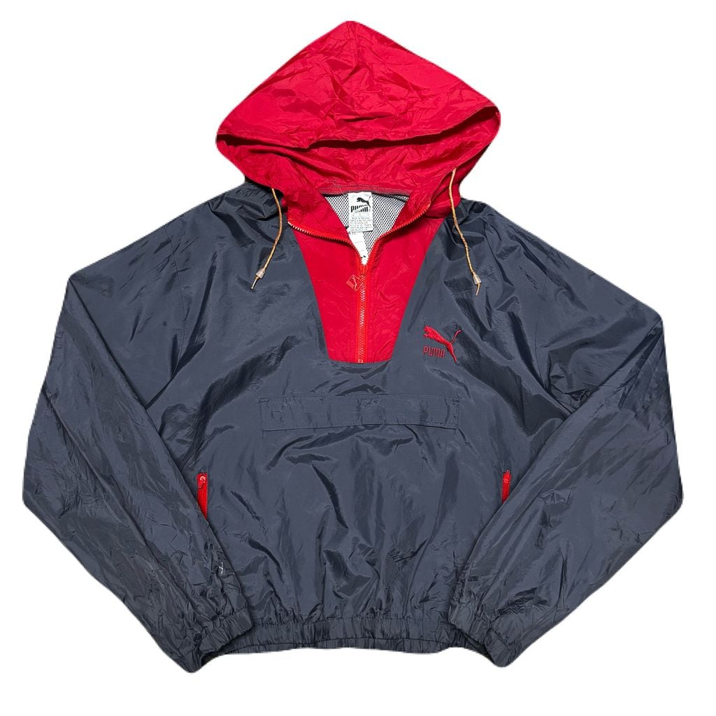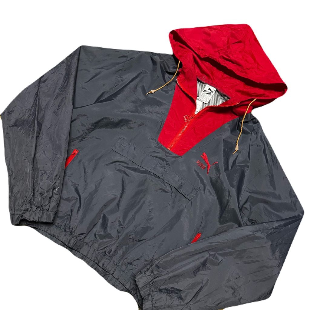 80s puma プーマ メッシュライナー ナイロン アノラックパーカー プルオーバー グレー×レッド Lサイズ No.EA71