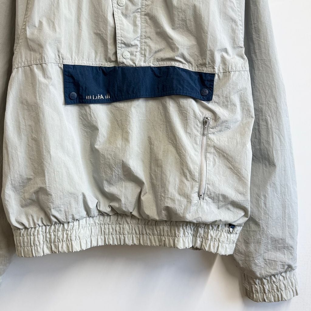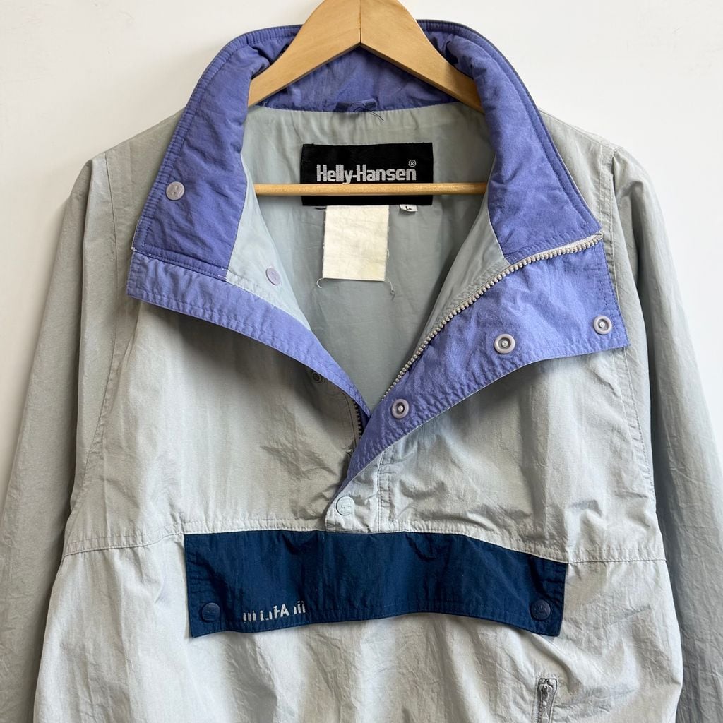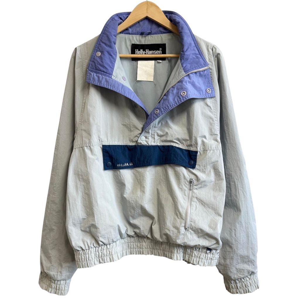 Helly Hansen ヘリーハンセン 良デザイン アノラックジャケット ハーフボタン プルオーバージャケット ライトグレー×ネイビー×ラベンダー Lサイズ No.M056