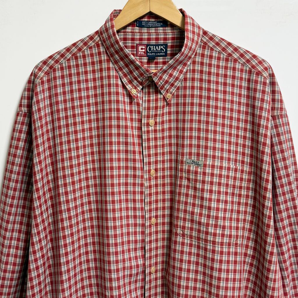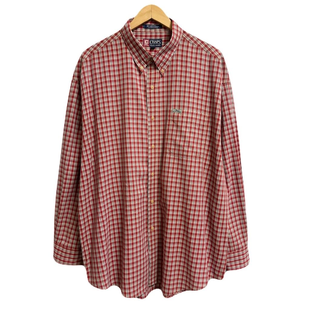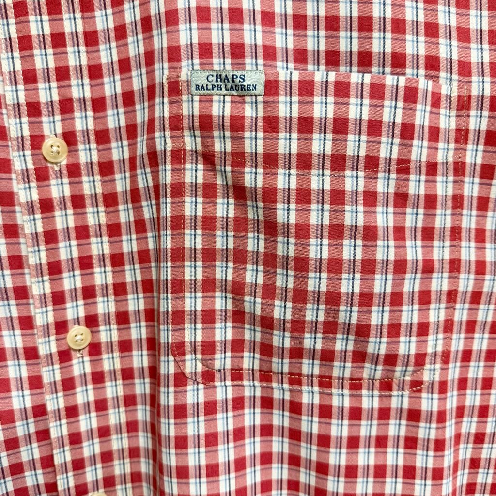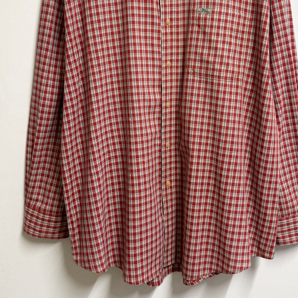 90's〜 CHAPS チャップス RALPH LAUREN ラルフローレン ボタンダウンシャツ チェック柄 ポケット付き 長袖シャツ 赤×白×紺×水色 XXLサイズ No.M065