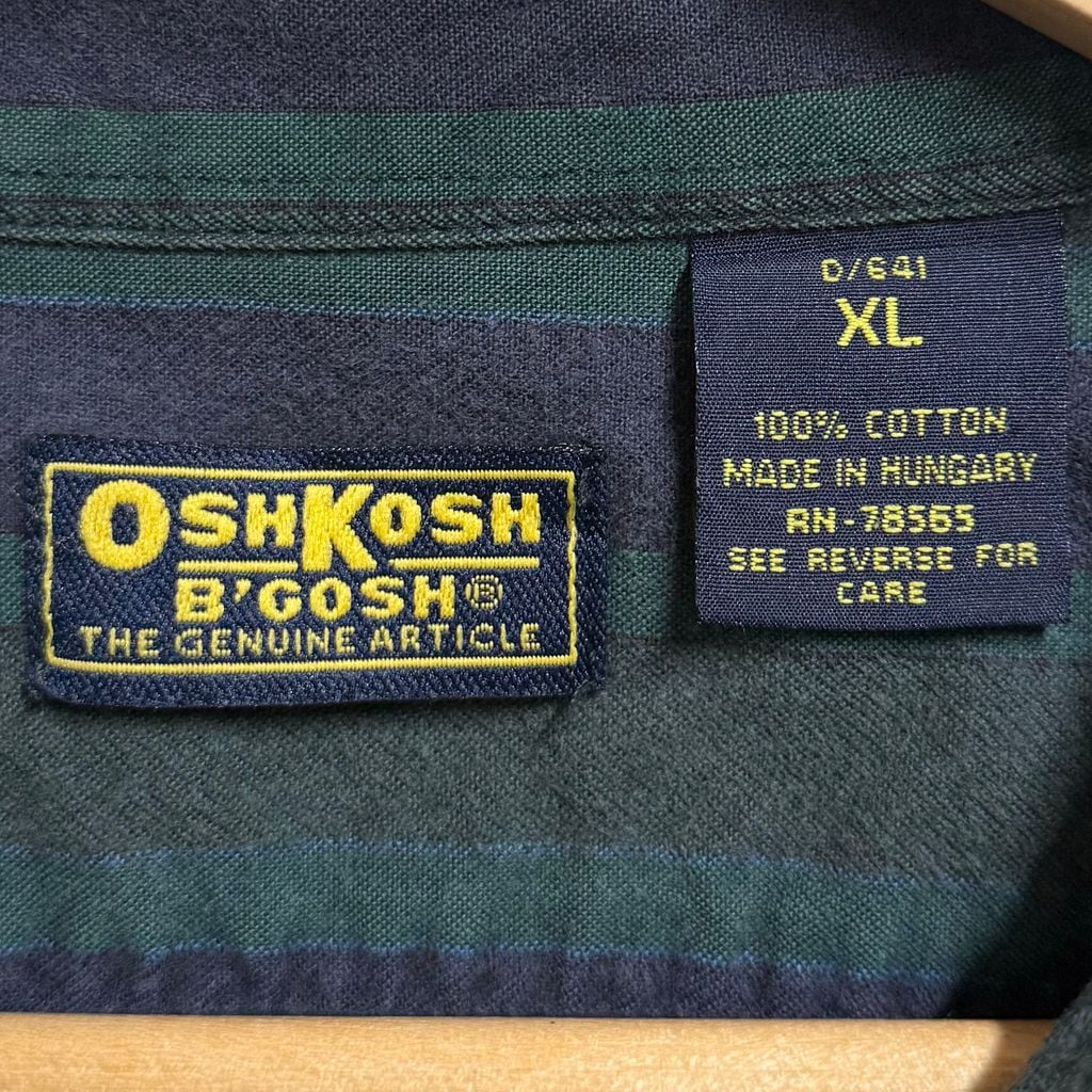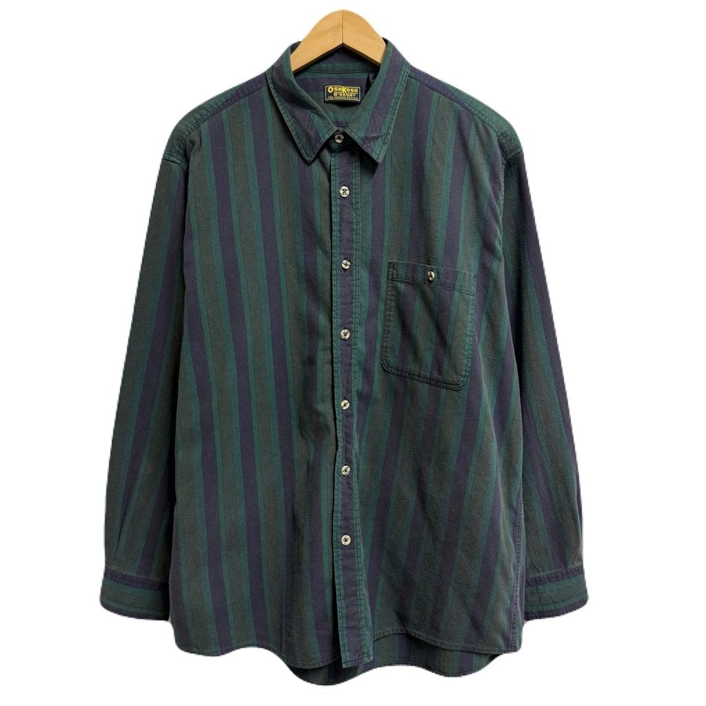 OSHKOSH オシュコシュ コットンシャツ ストライプ ポケット付き 長袖シャツ ネイビー×グリーン×多色 XLサイズ No.M066