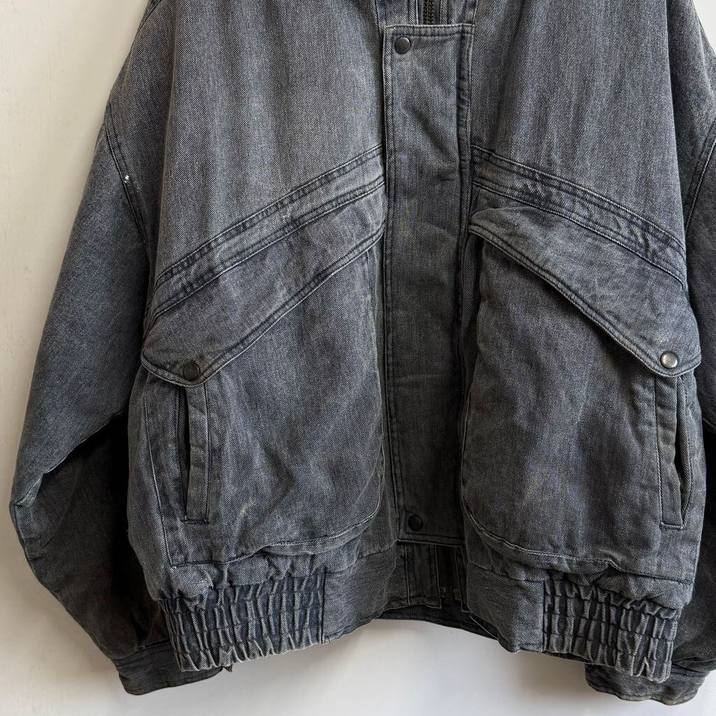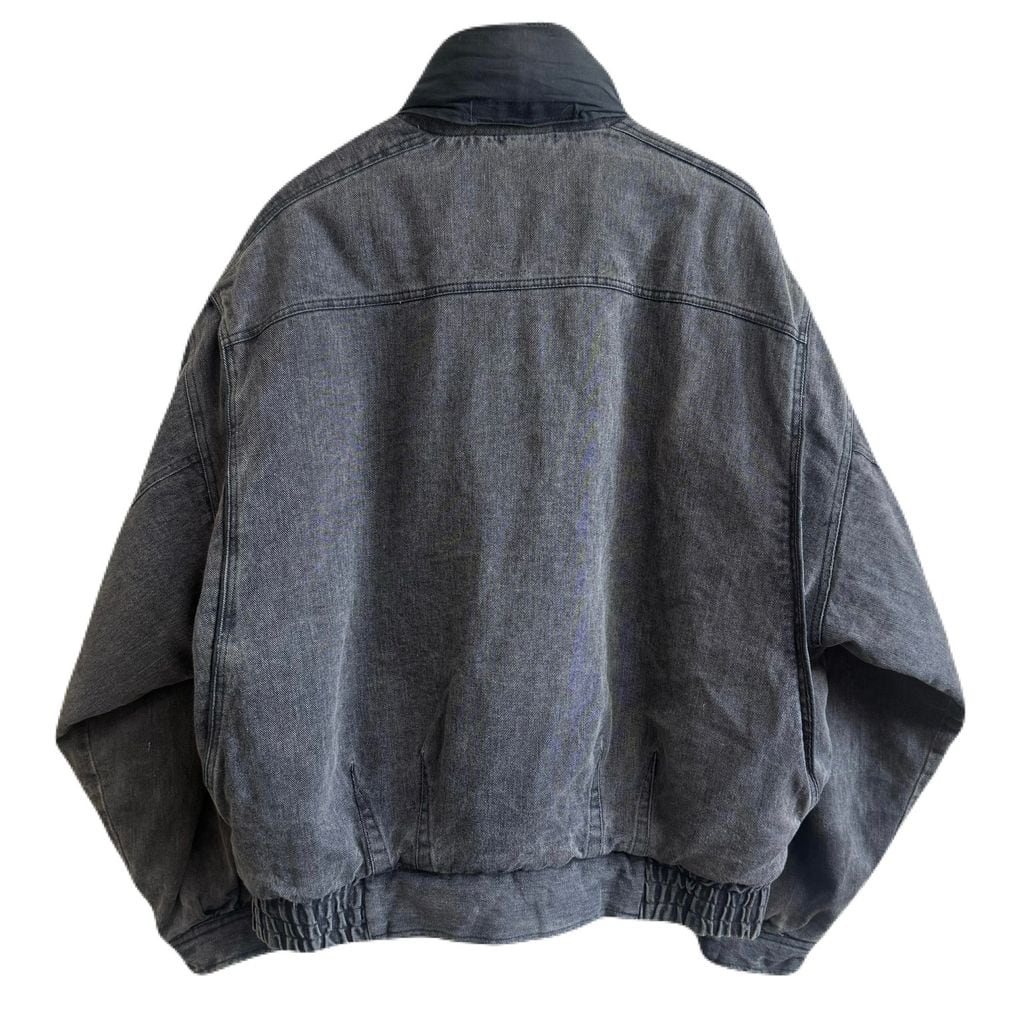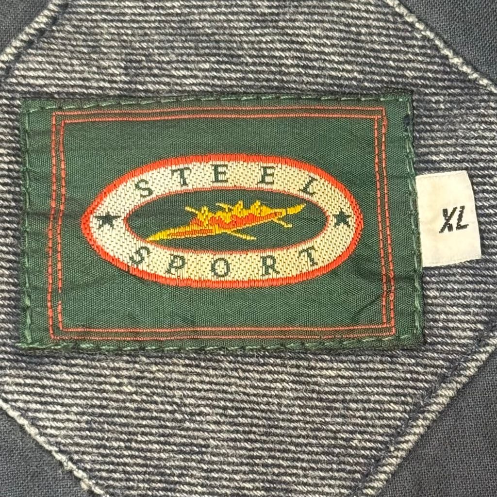 〜90's STEEL SPORT デニムジャケット フード付き デニムスタンドブルゾン 紺 ネイビー系 XLサイズ No.M074