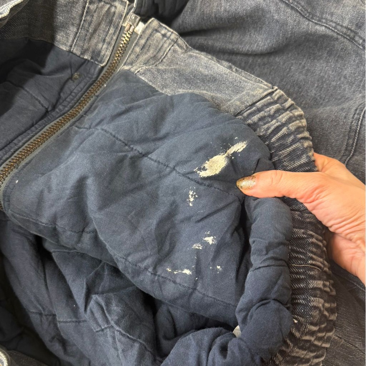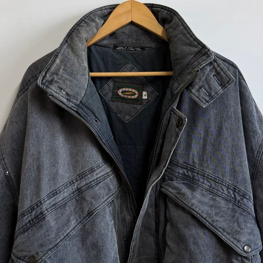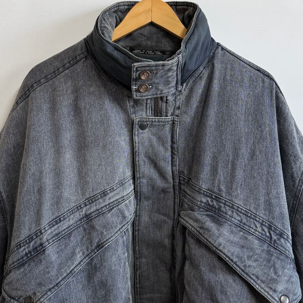 〜90's STEEL SPORT デニムジャケット フード付き デニムスタンドブルゾン 紺 ネイビー系 XLサイズ No.M074