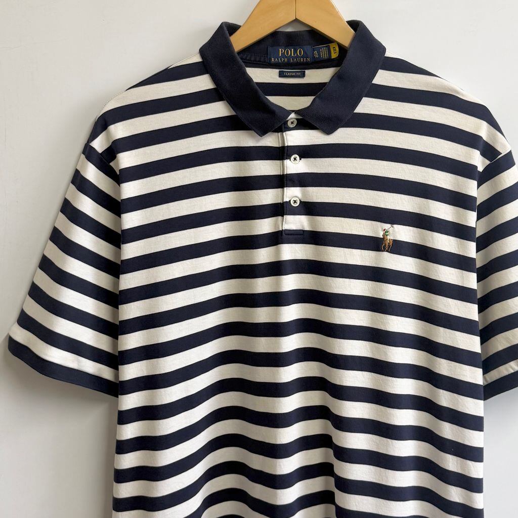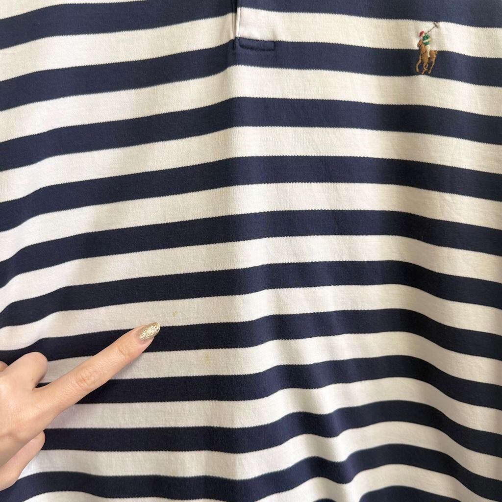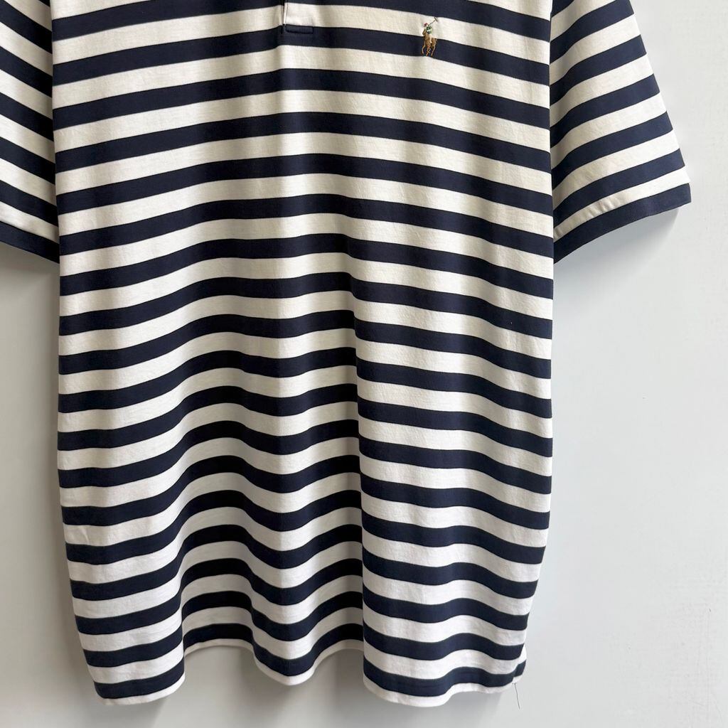 POLO RALPH LAUREN ポロ ラルフローレン CLASSIC FIT ポロシャツ 半袖 ボーダー ワンポイントロゴ 刺繍 紺×白 XLサイズ No.M080