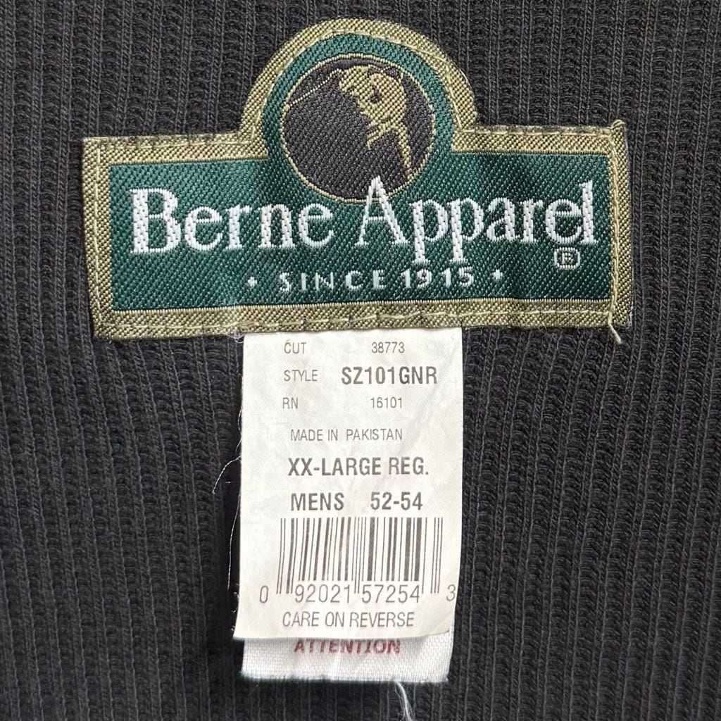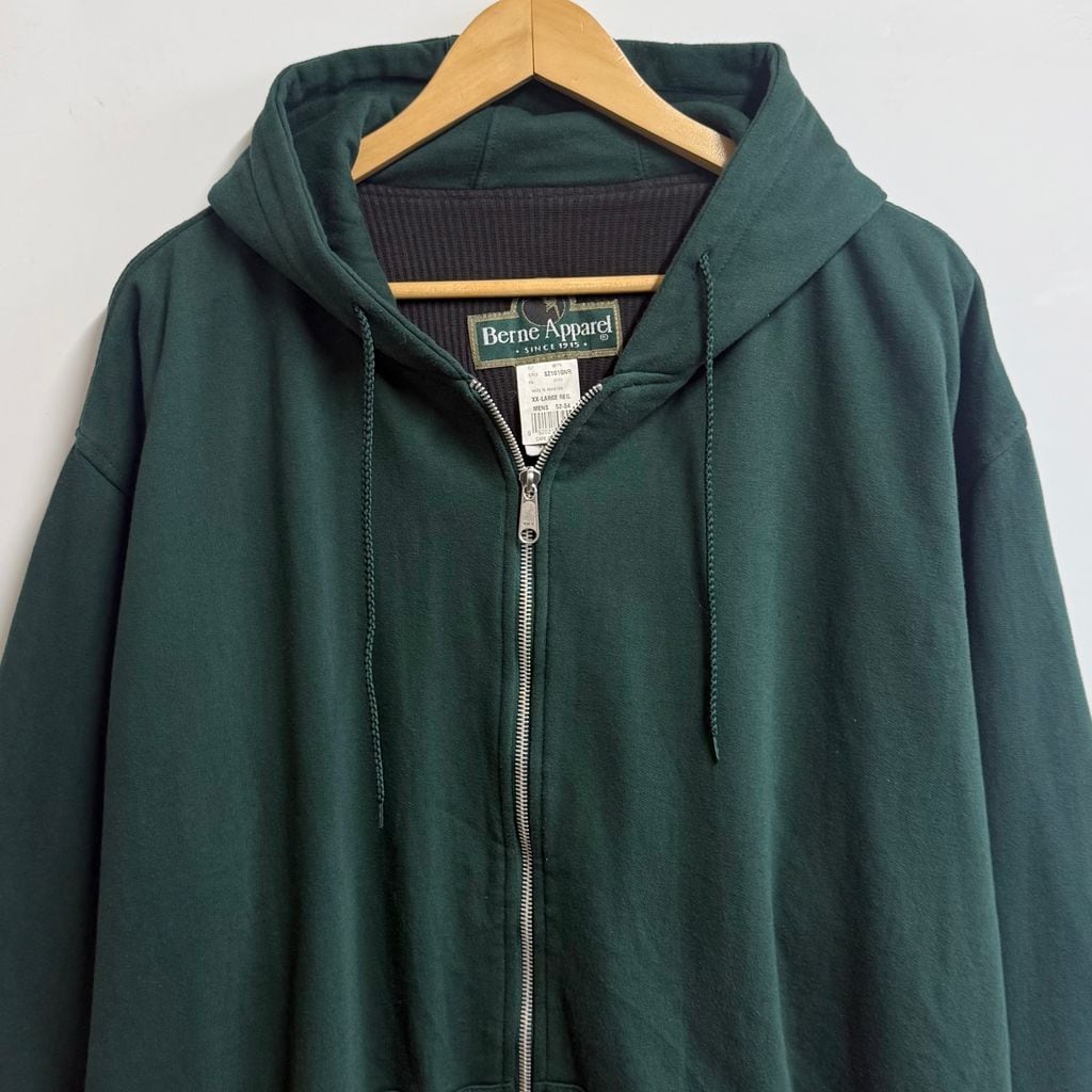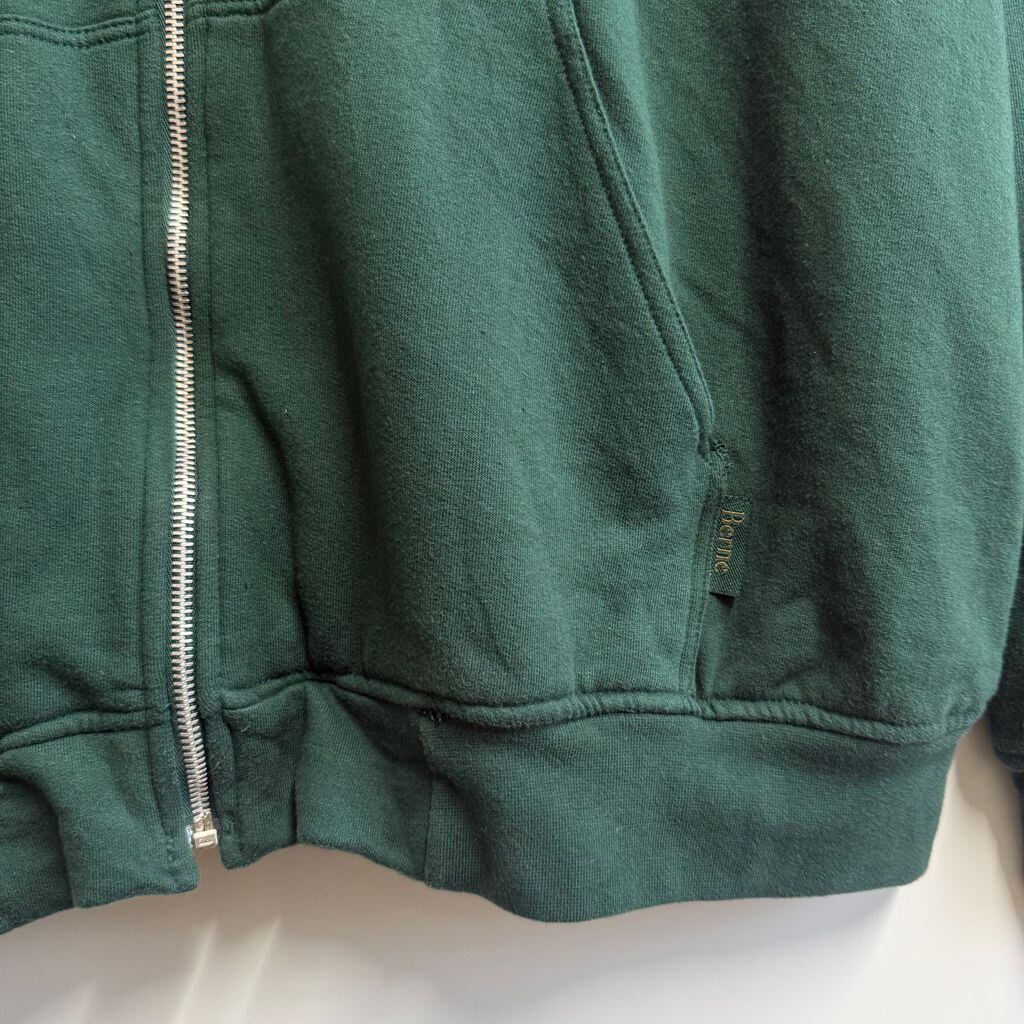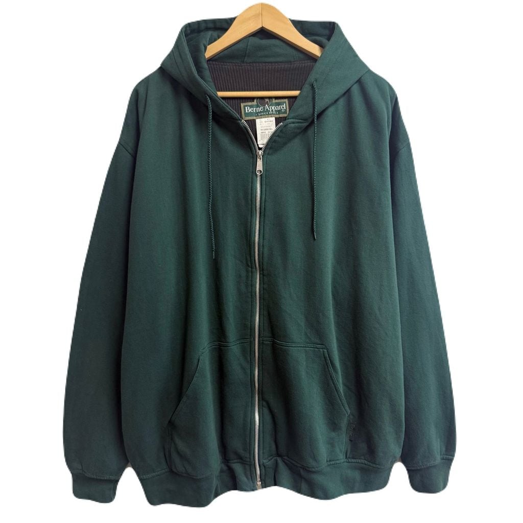90's〜 Berne Apparel サーマル裏地 フルジップパーカー 緑 グリーン XXLサイズ No.M087