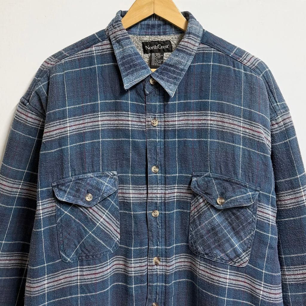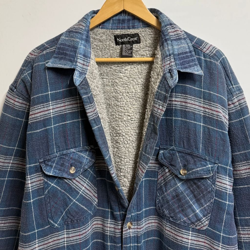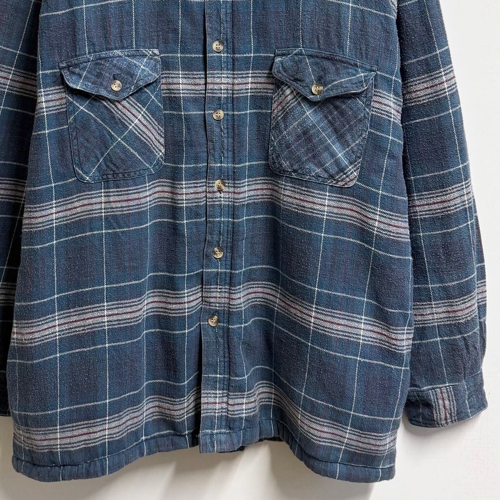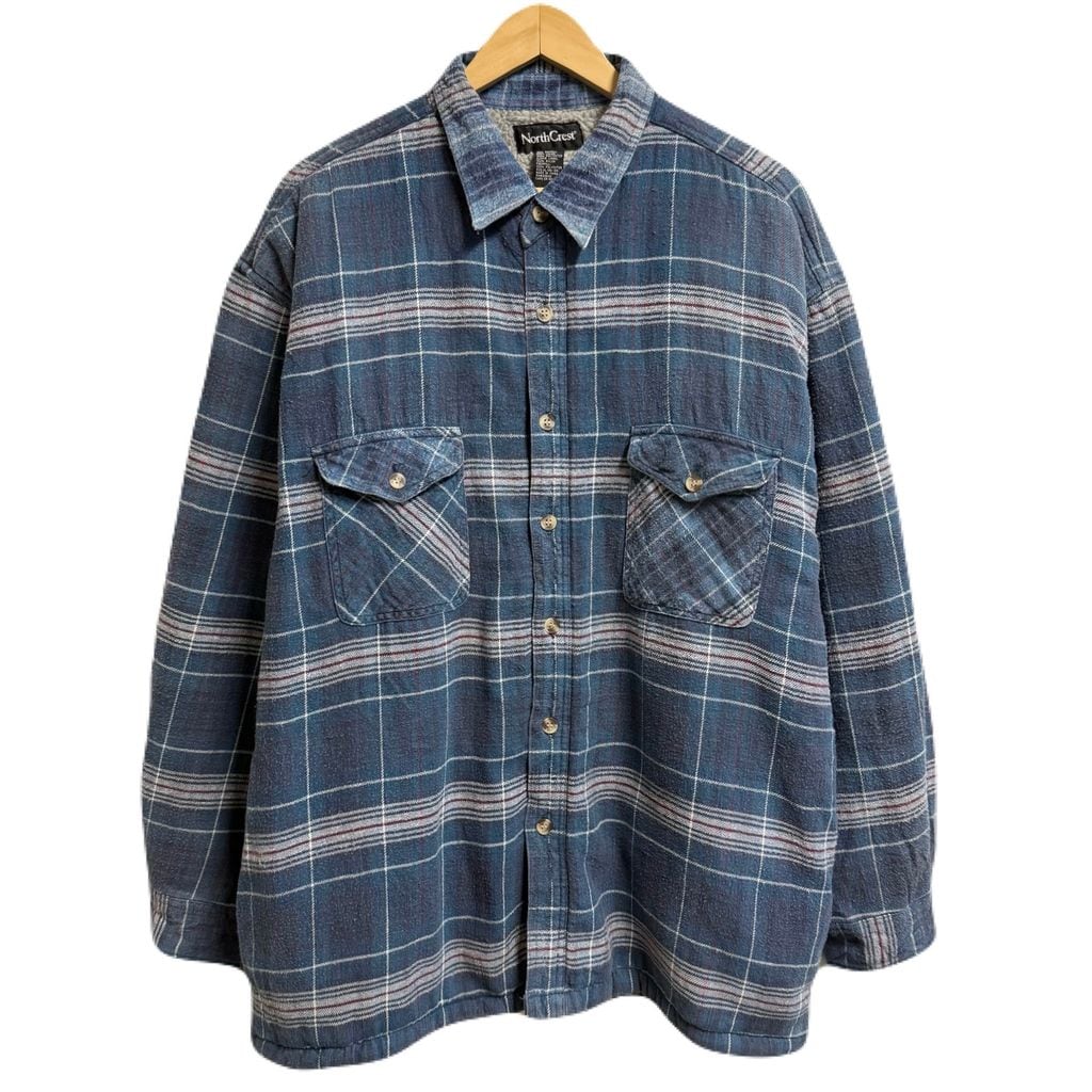 North Crest シャツジャケット ボアライニング ポケット付き チェック柄 厚手長袖シャツ 青×白×赤×多色 XLサイズ No.M091
