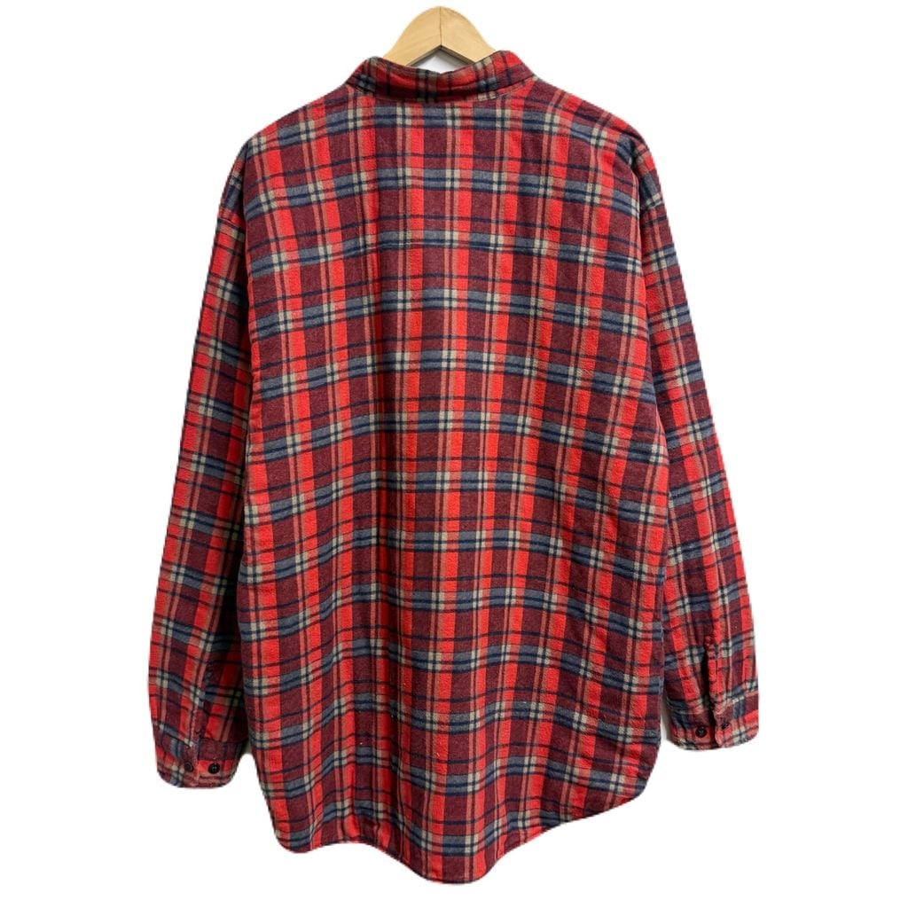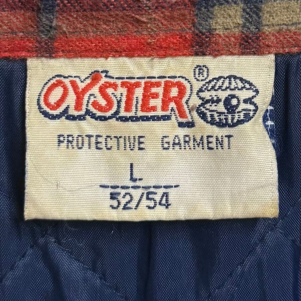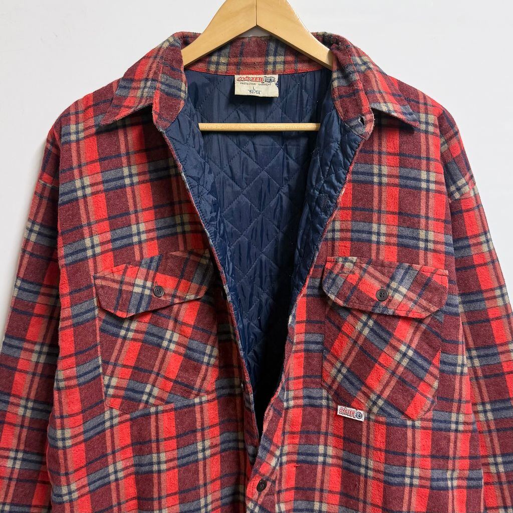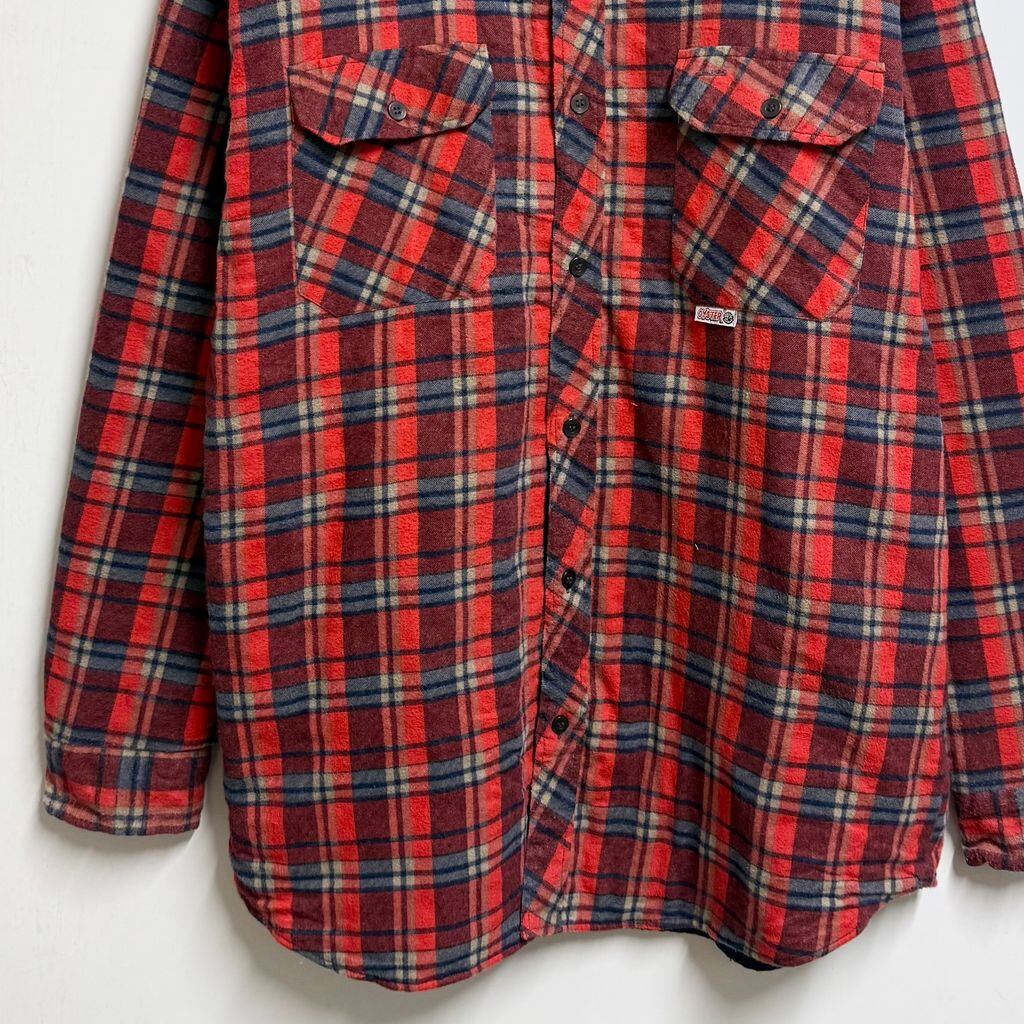 OYSTER シャツジャケット キルティング裏地 コットンシャツ チェック柄 ポケット付き 厚手長袖シャツ 朱色 赤×紺×ベージュ Lサイズ No.M092