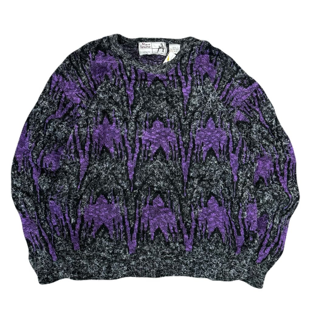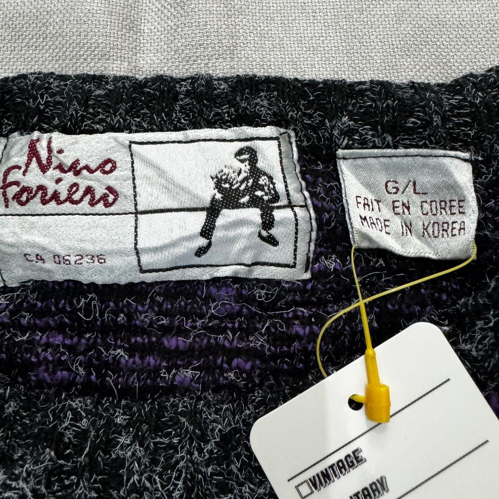 Nino Foriero アクリルセーター ニット 総柄 黒×紫 Lサイズ No.EA79