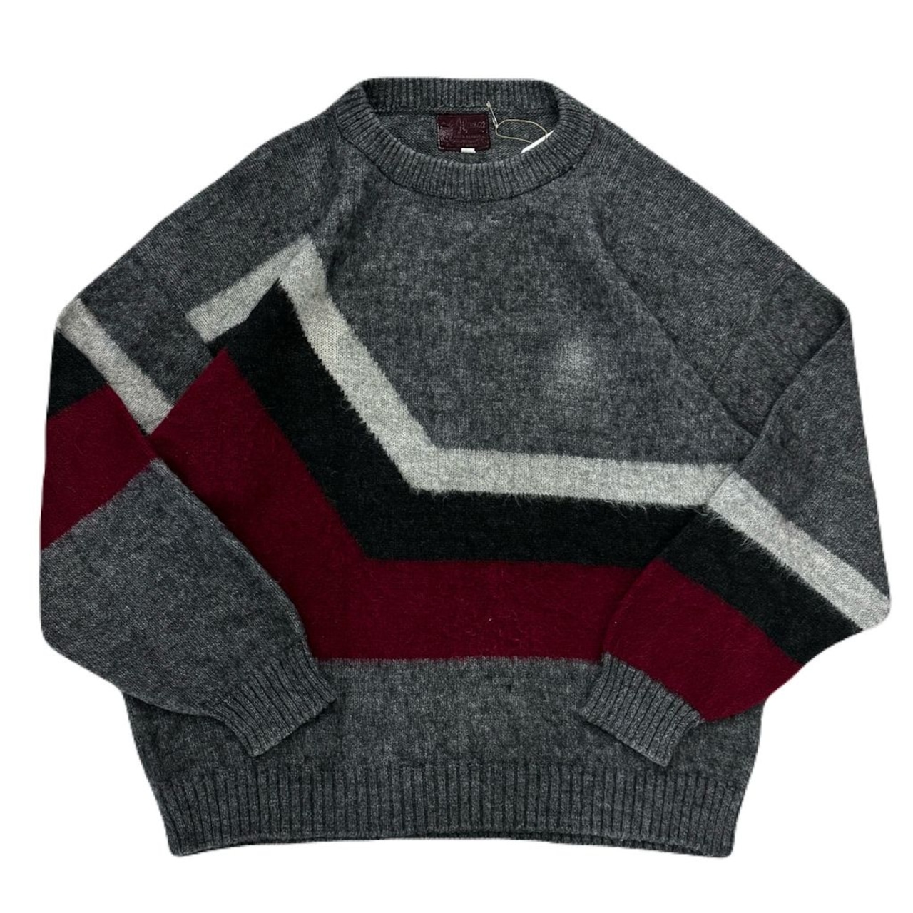 ブロックデザイン クルーネックセーター グレー×ブラック×バーガンディ Lサイズ No.EA78