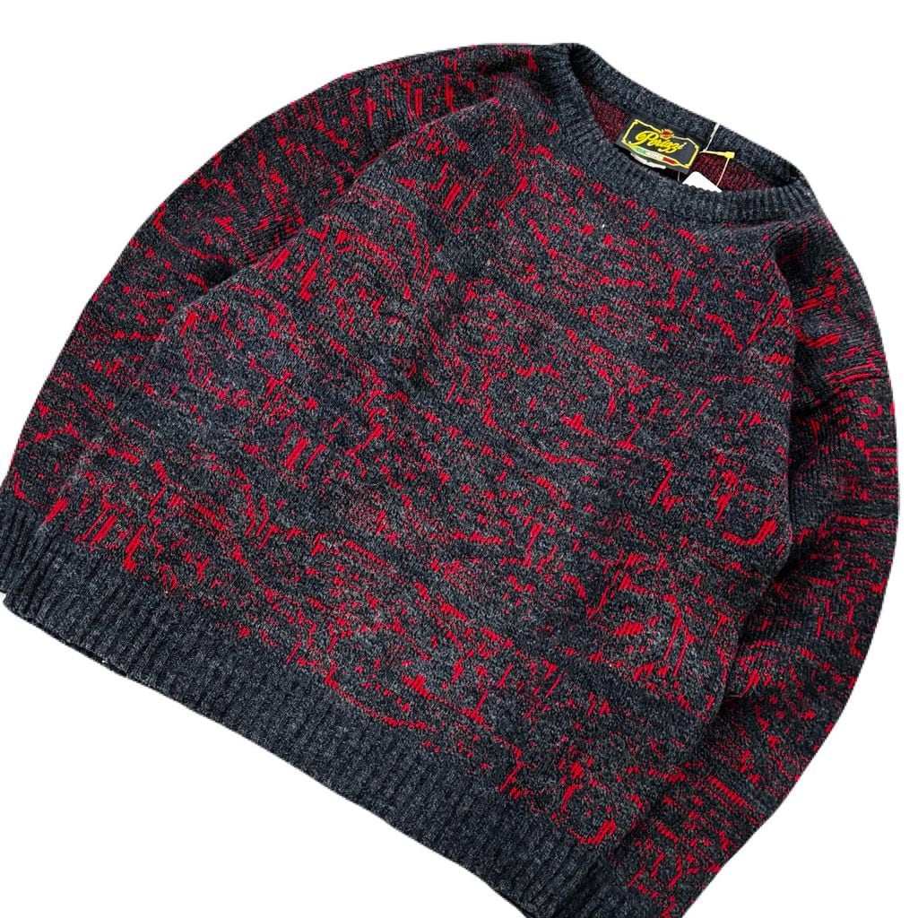 Made In Australia Perazzi ペラッツィ ダマスク柄 総柄 ニット セーター 黒×赤 Sサイズ No.EA77