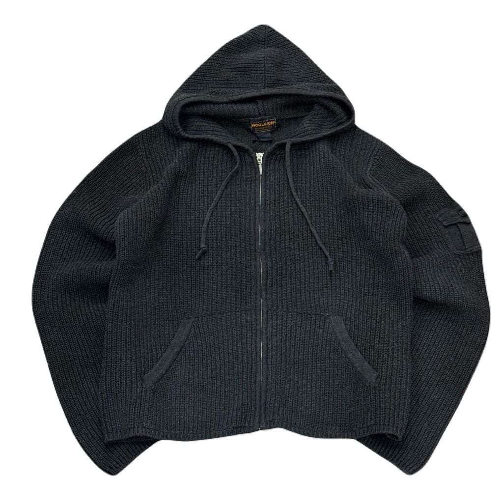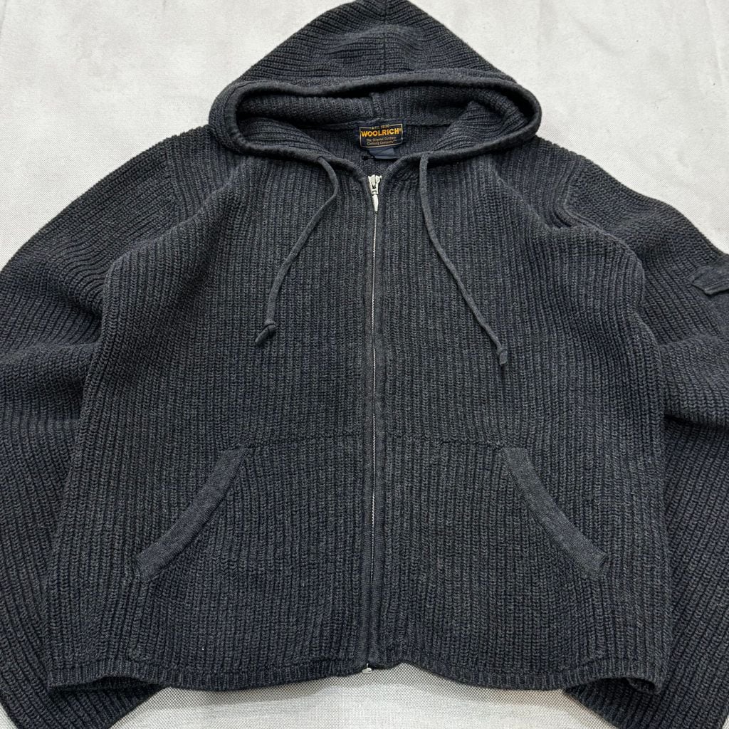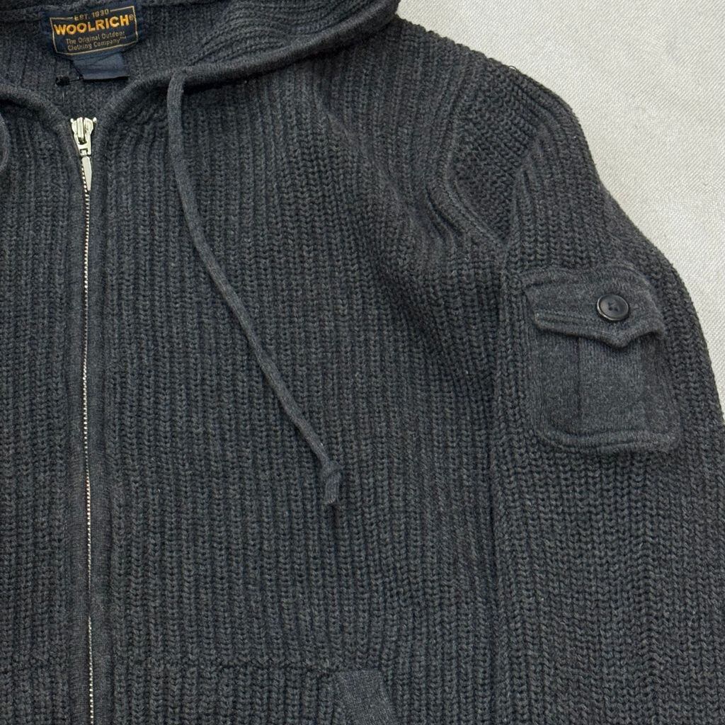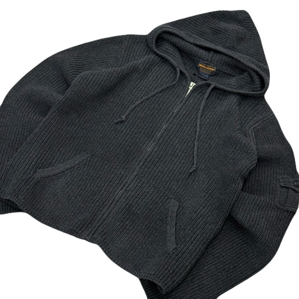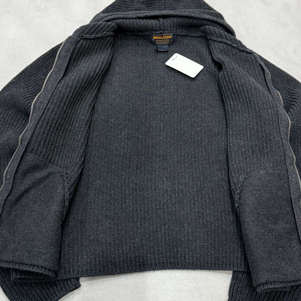 WOOLRICH WOMENS ウールリッチ レディース コットンニット フルジップ パーカー フーディー ポケット付き ダークグレー Lサイズ No.EA81